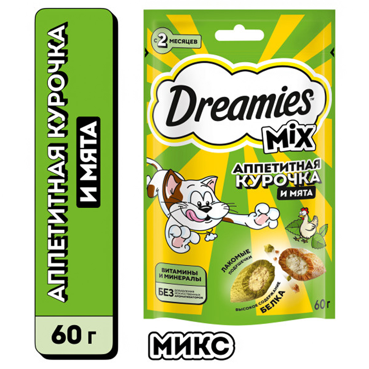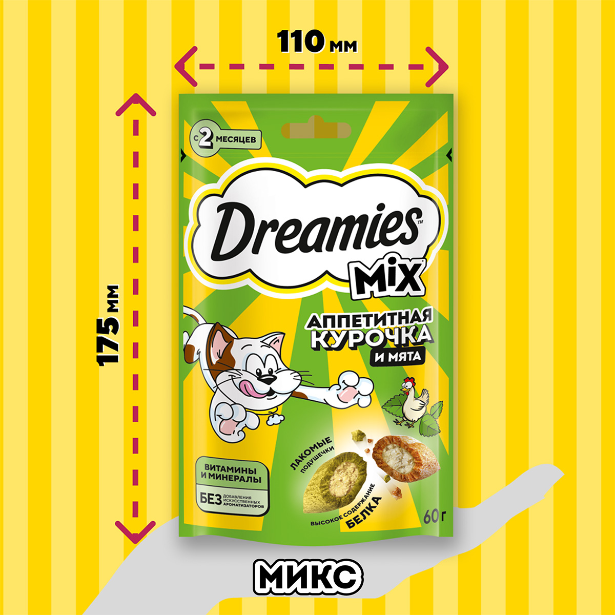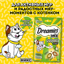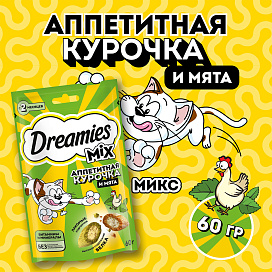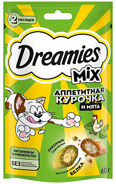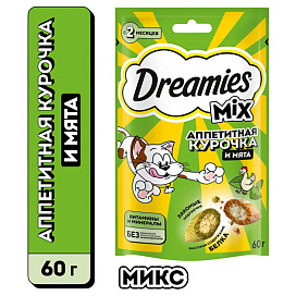 Лакомство для кошек DREAMIES MIX подушечки курица, мята (60 гр)