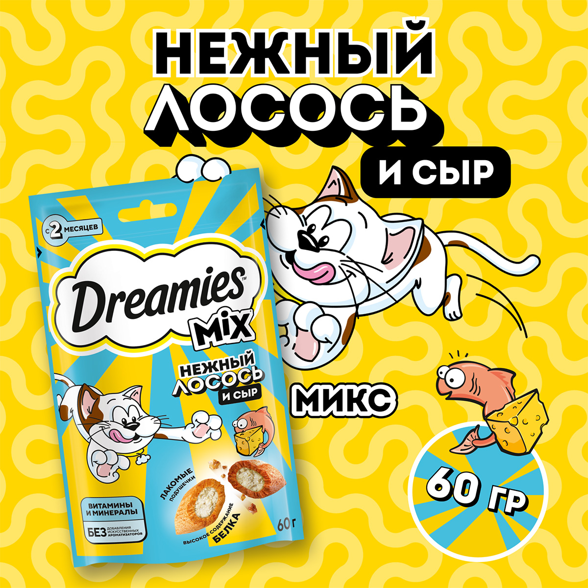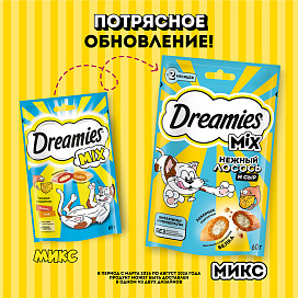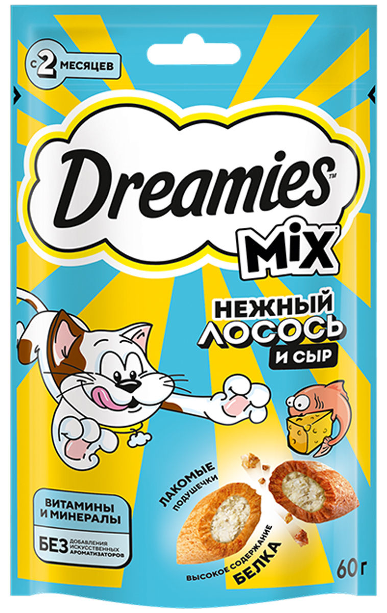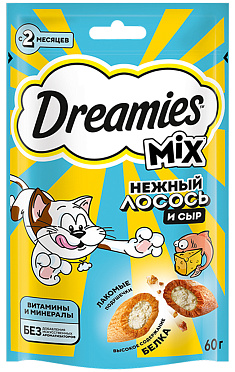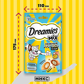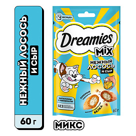Лакомство для кошек DREAMIES MIX подушечки лосось, сыр (60 гр)