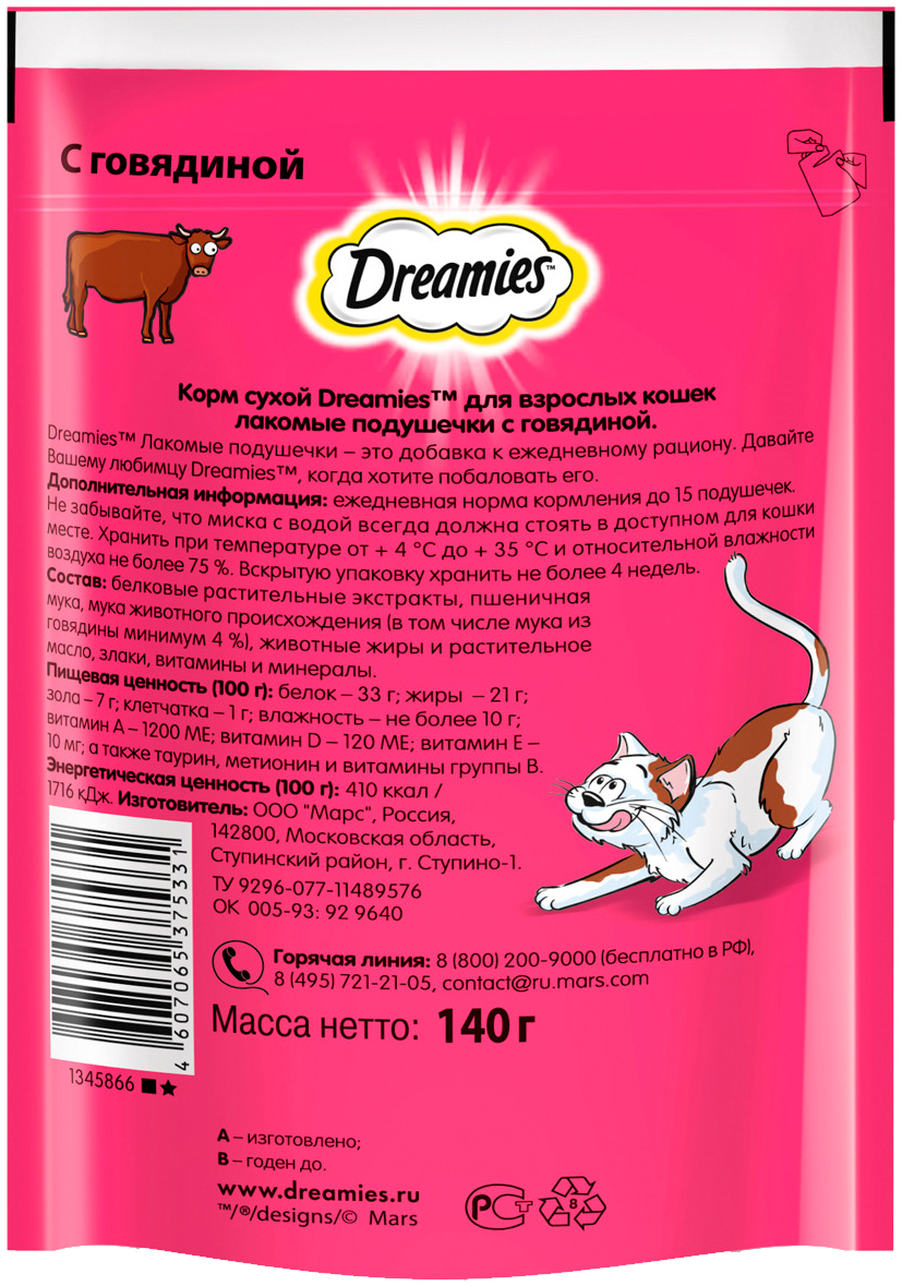 Лакомые подушечки DREAMIES - это отличная добавка к ежедневному рациону!