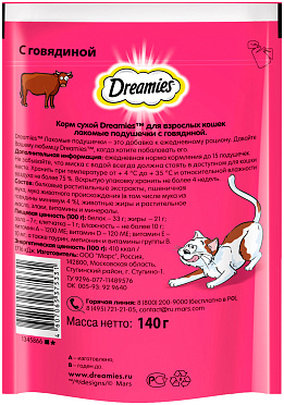 Лакомство для кошек DREAMIES подушечки говядина (140 гр)
