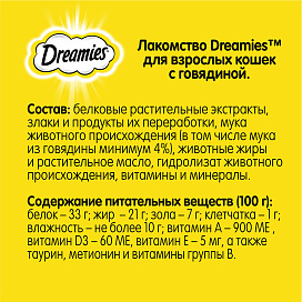 DREAMIES - это привлекательная текстура и вкус, а также полезный состав, разработанный специально для кошек.