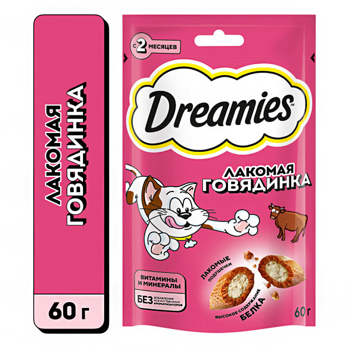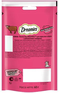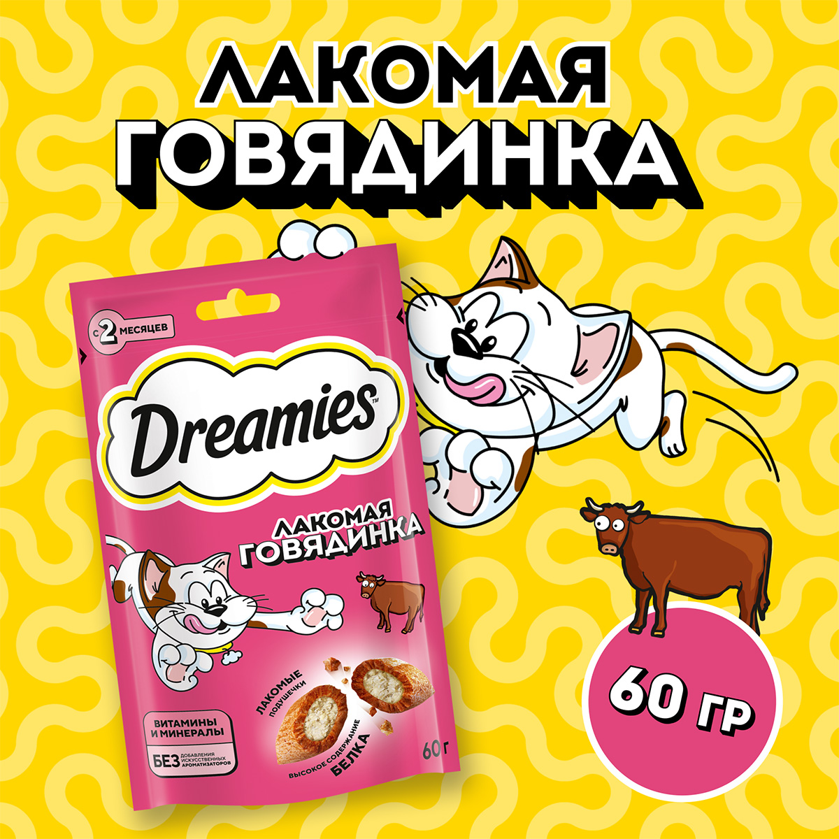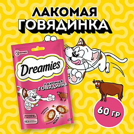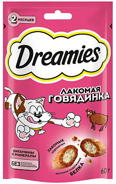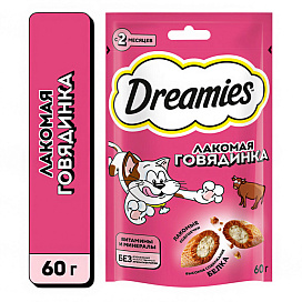 Лакомство для кошек DREAMIES с добавлением говядины – это достойная награда вашему любимому зверю.