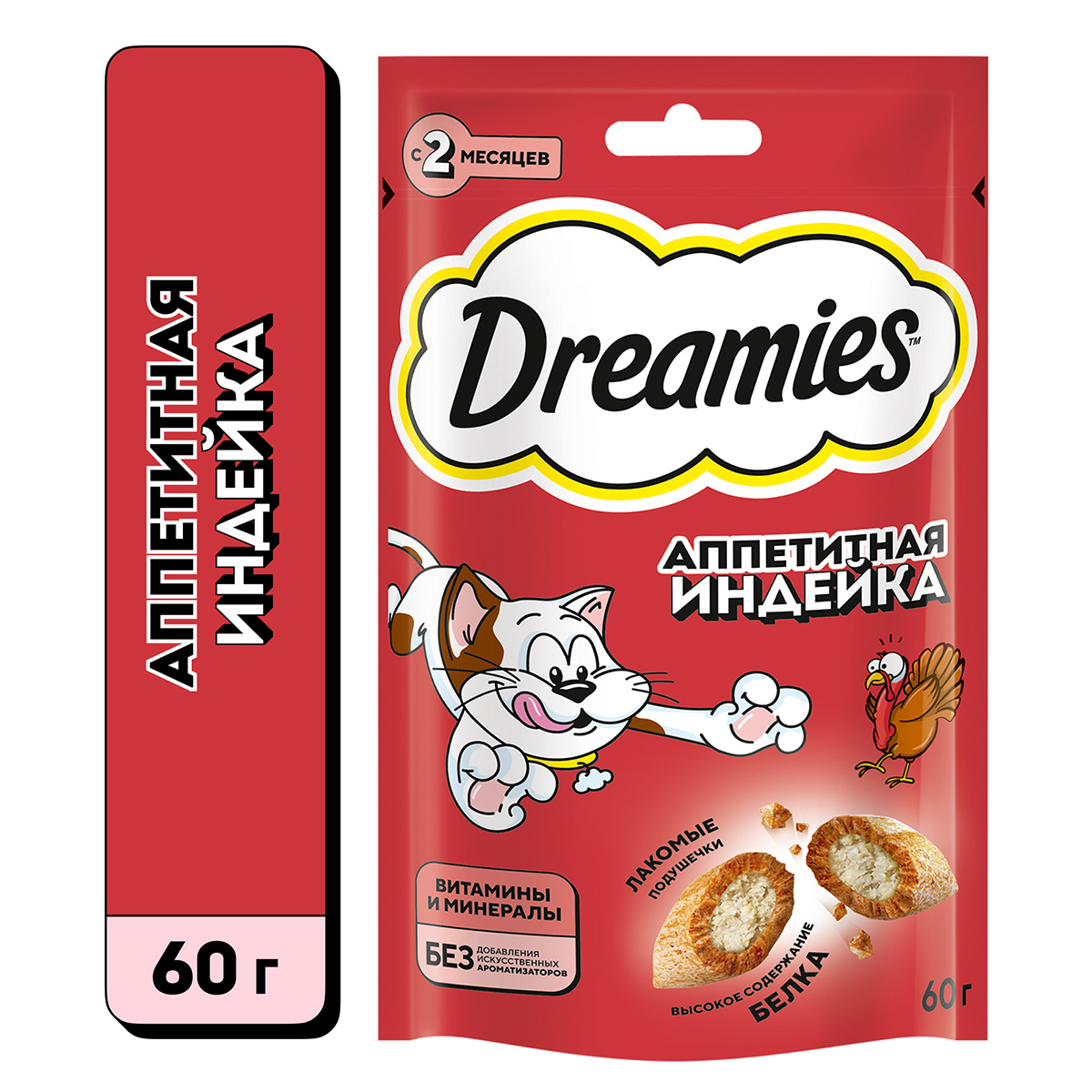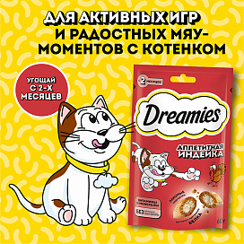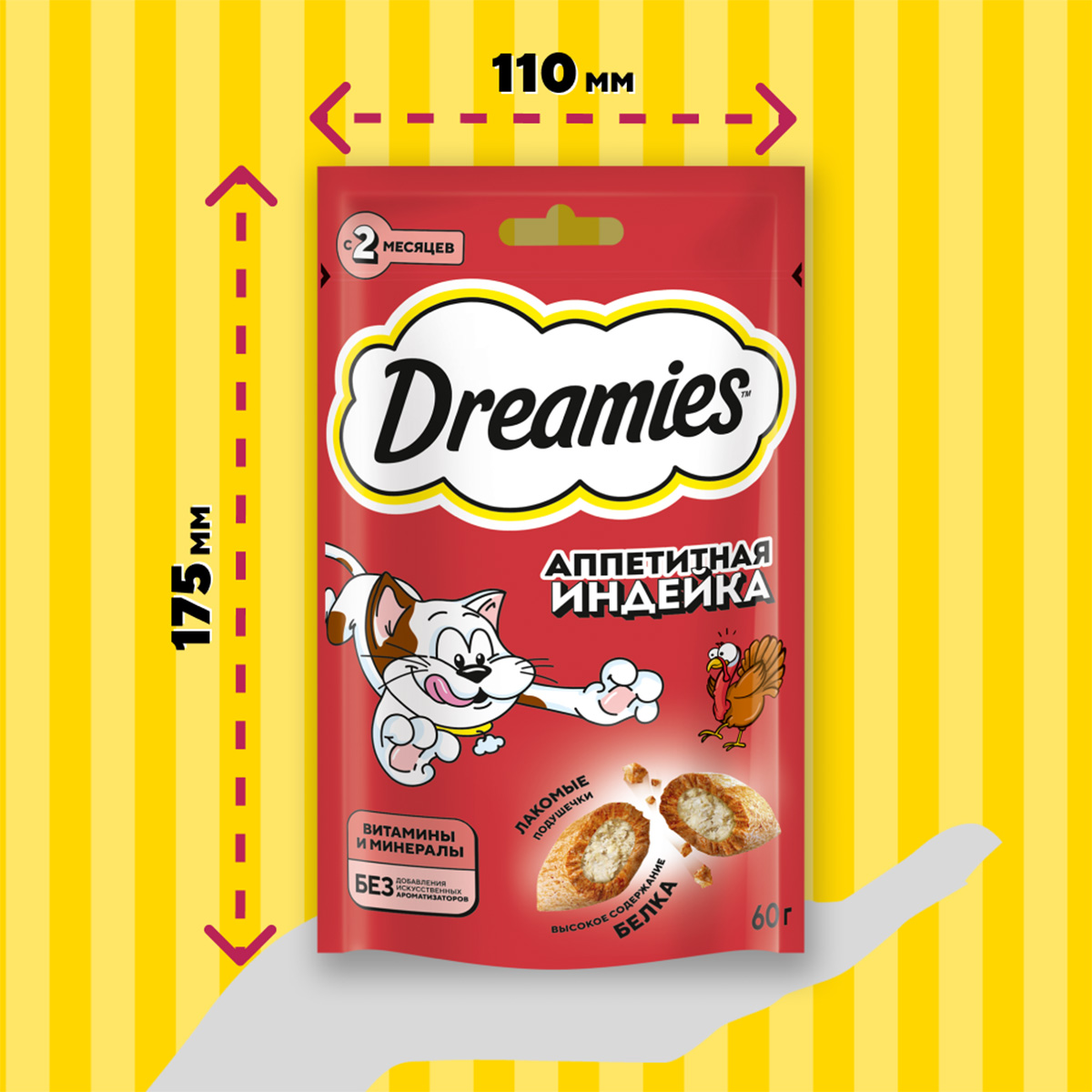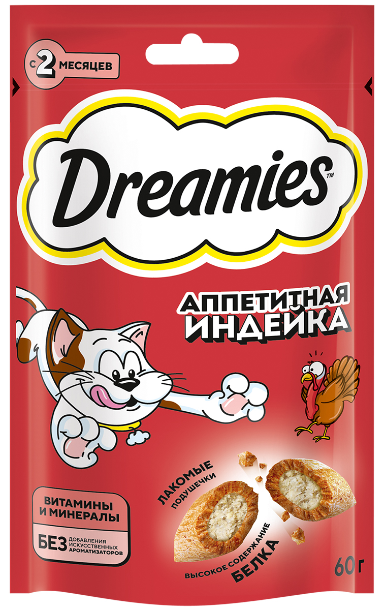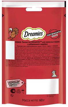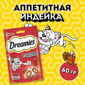 Лакомство для кошек DREAMIES с добавлением индейки - это достойная награда вашему любимому зверю.