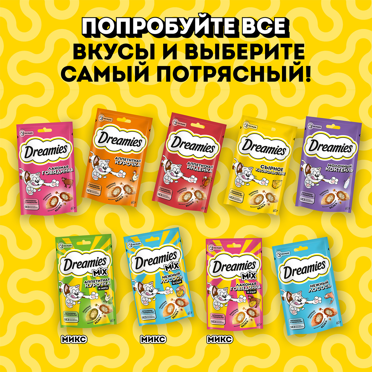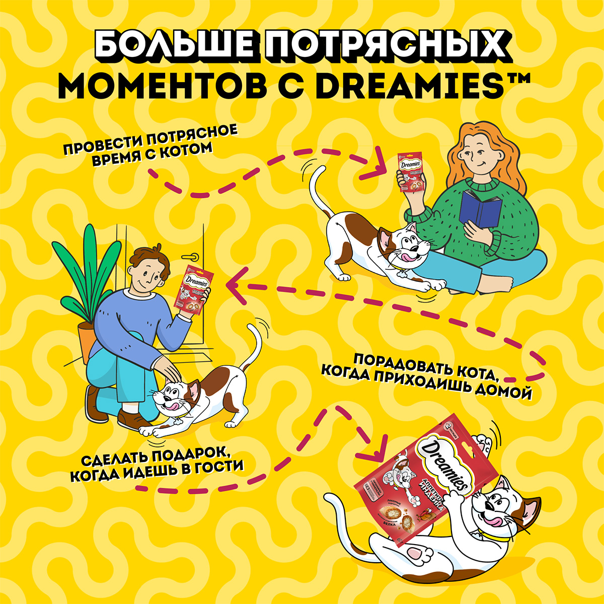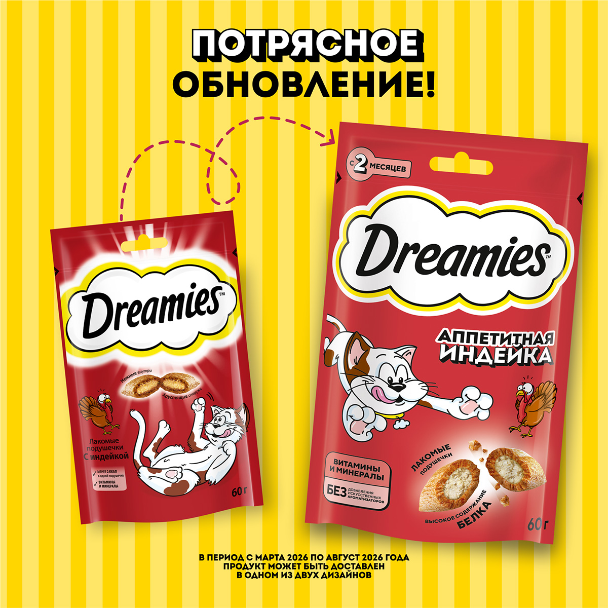 Лакомство для кошек DREAMIES с добавлением индейки - это достойная награда вашему любимому зверю.