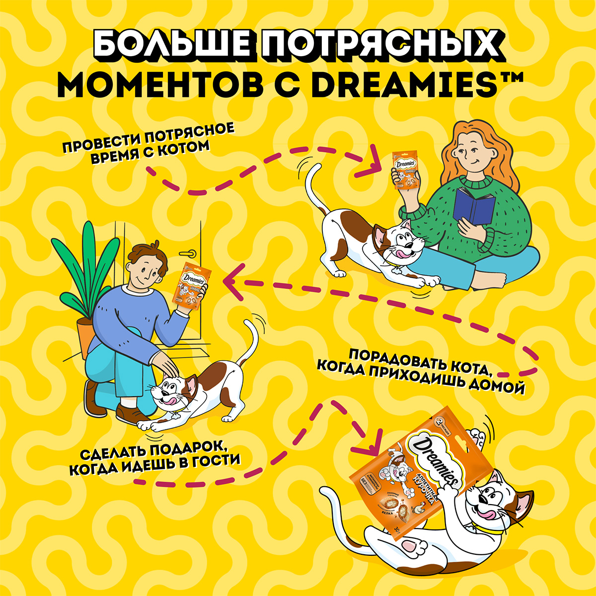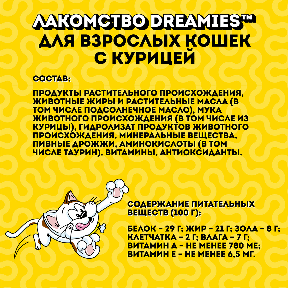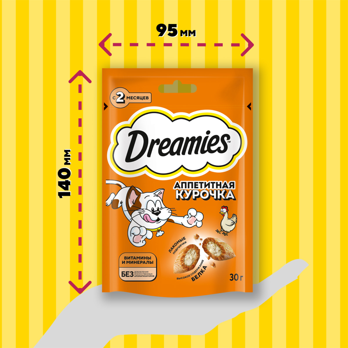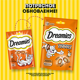 Лакомство для кошек DREAMIES с курицей – это достойная награда вашему любимому зверю.