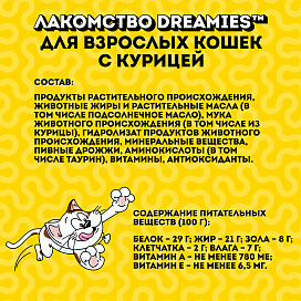 Лакомство для кошек DREAMIES подушечки курица (30 гр)