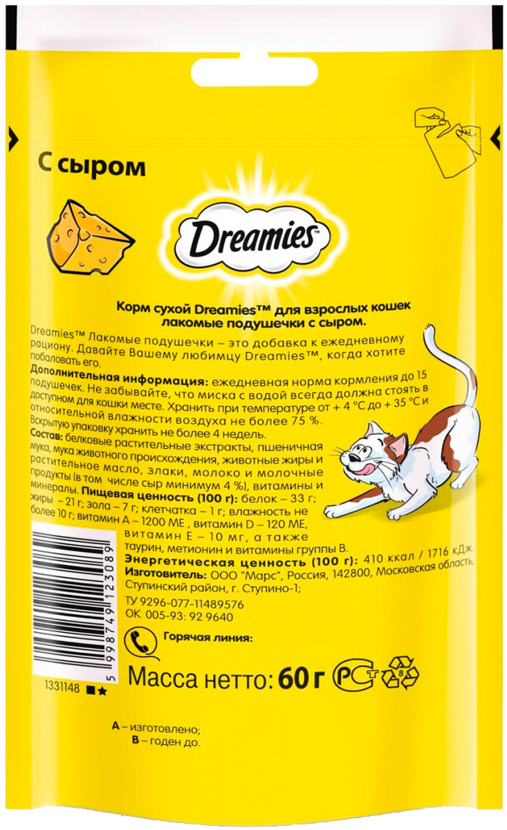 Лакомые подушечки DREAMIES - это отличная добавка к ежедневному рациону.