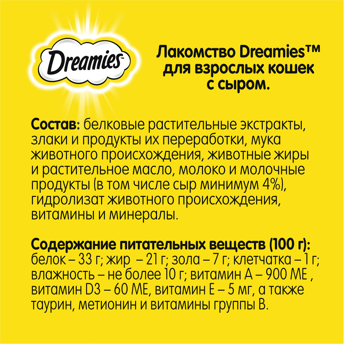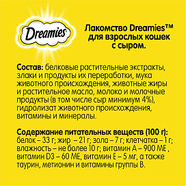 DREAMIES - это привлекательная текстура и вкус, а также полезный состав, разработанный специально для кошек.