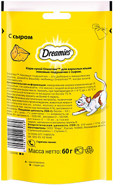 Лакомство для кошек DREAMIES подушечки сыр (60 гр)