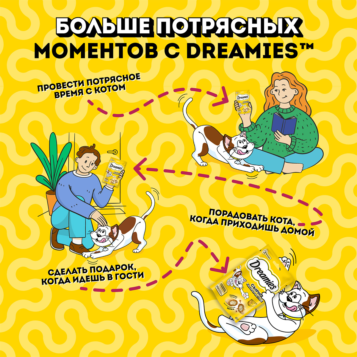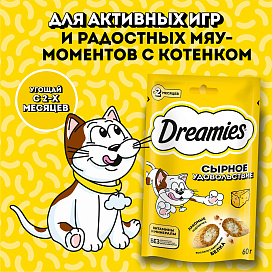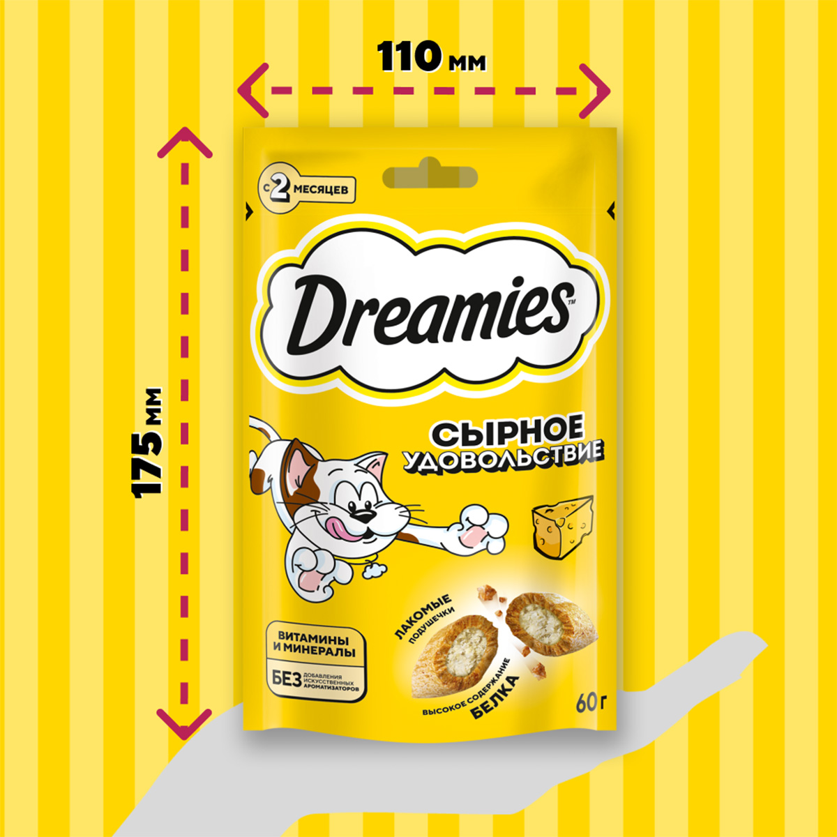 Лакомство для кошек DREAMIES с добавлением сыра – это достойная награда вашему любимому зверю.