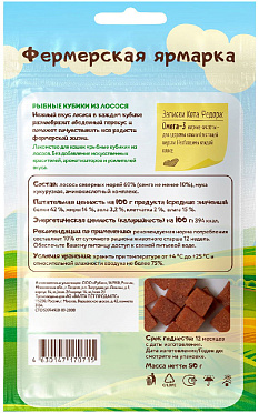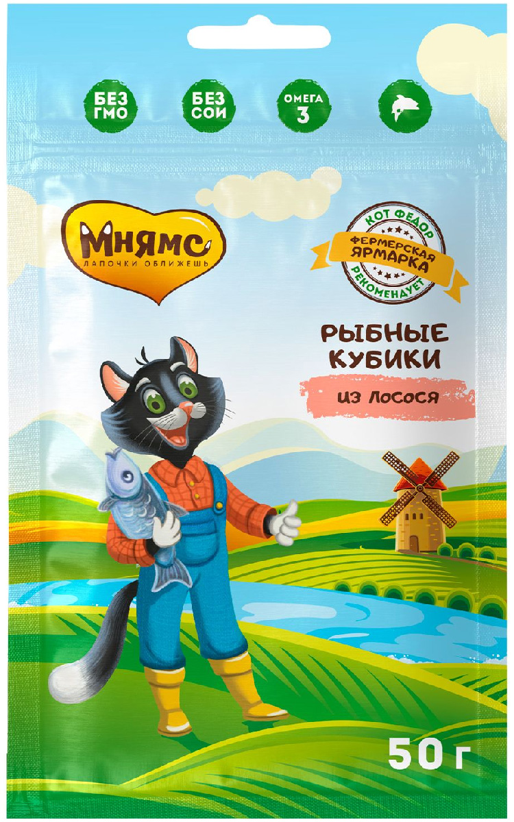 Лакомство для кошек МНЯМС КОТ ФЕДОР ФЕРМЕРСКАЯ ЯРМАРКА мясные кубики лосось 50 гр (1 шт)