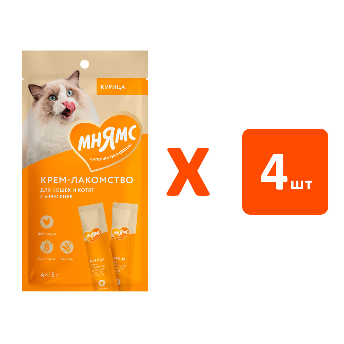 Лакомство для кошек МНЯМС крем курица (4 шт х 4)