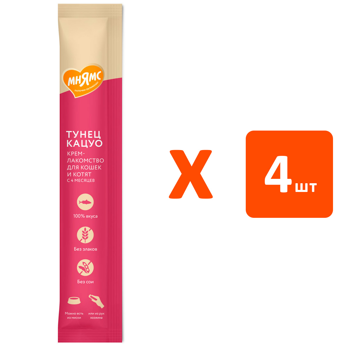 Лакомство для кошек МНЯМС крем тунец Кацуо (1 шт х 4)