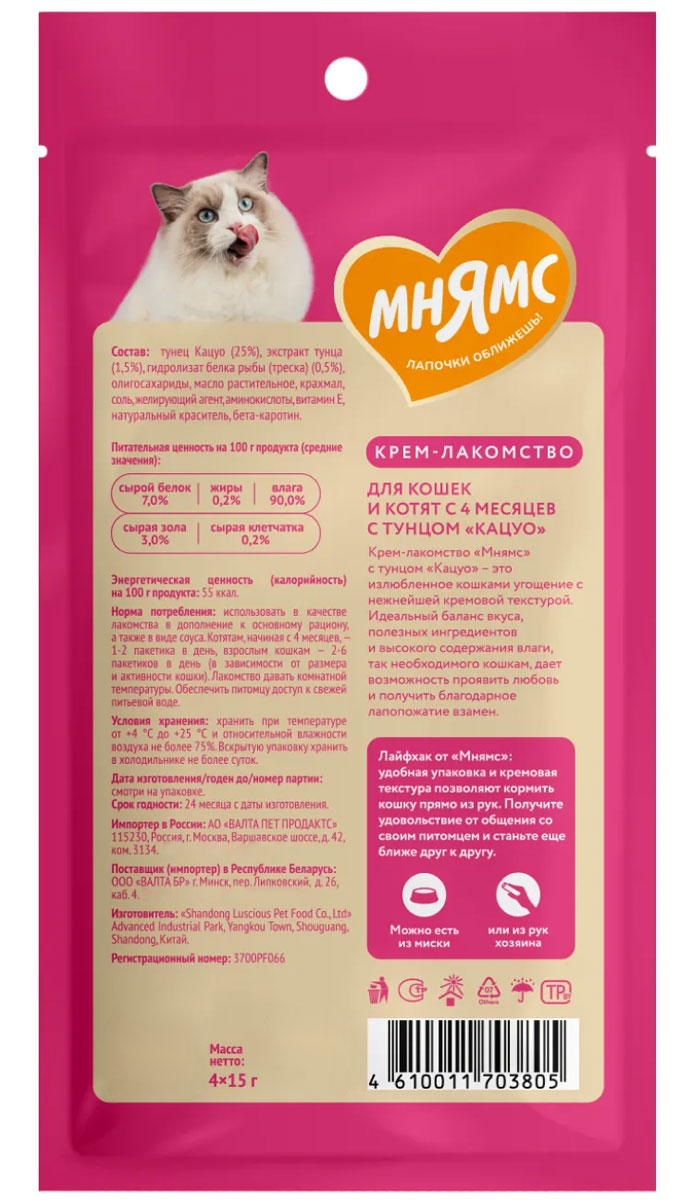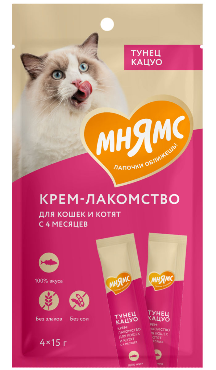 Лакомство для кошек МНЯМС крем тунец Кацуо (4 шт)