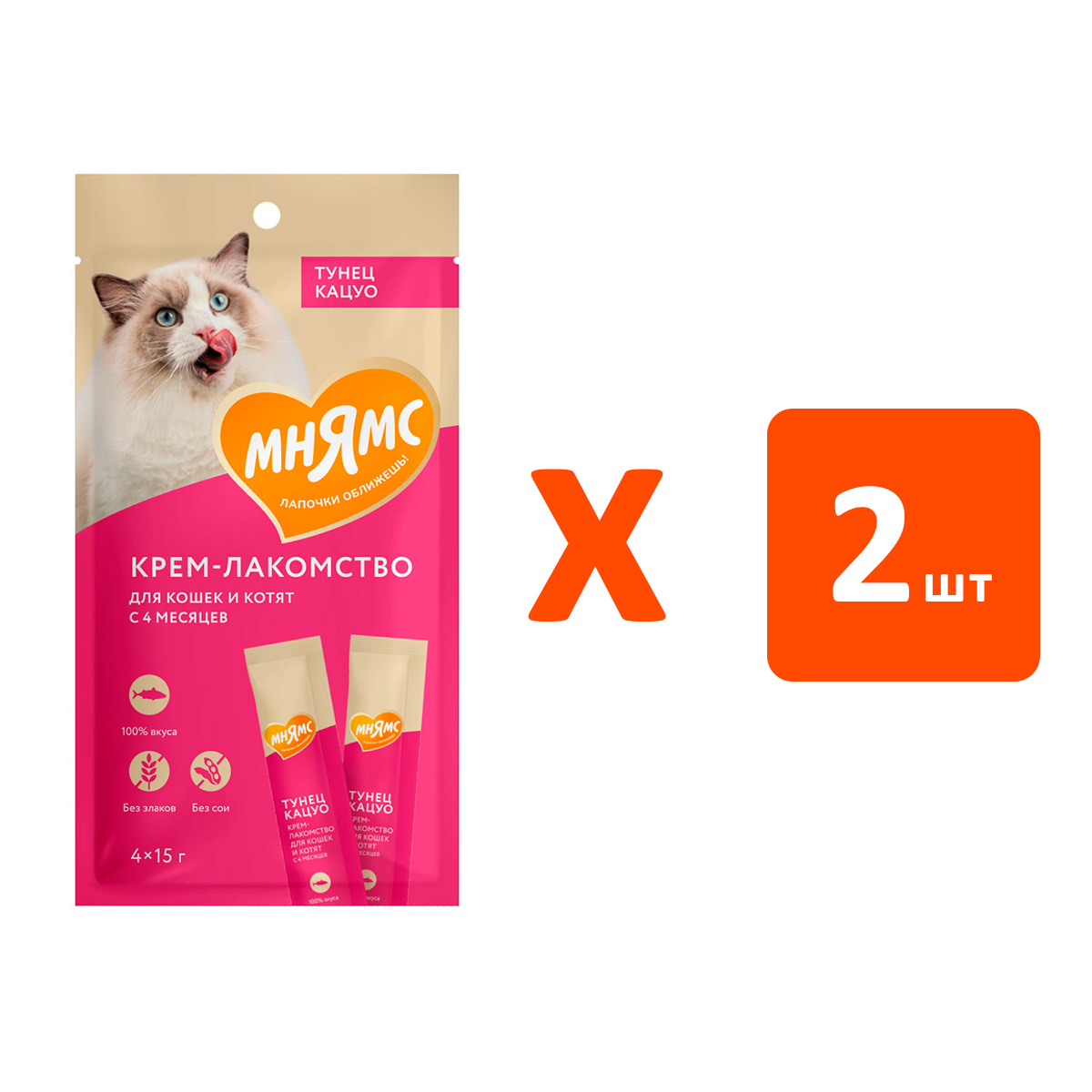 Лакомство для кошек МНЯМС крем тунец Кацуо (4 шт х 2)