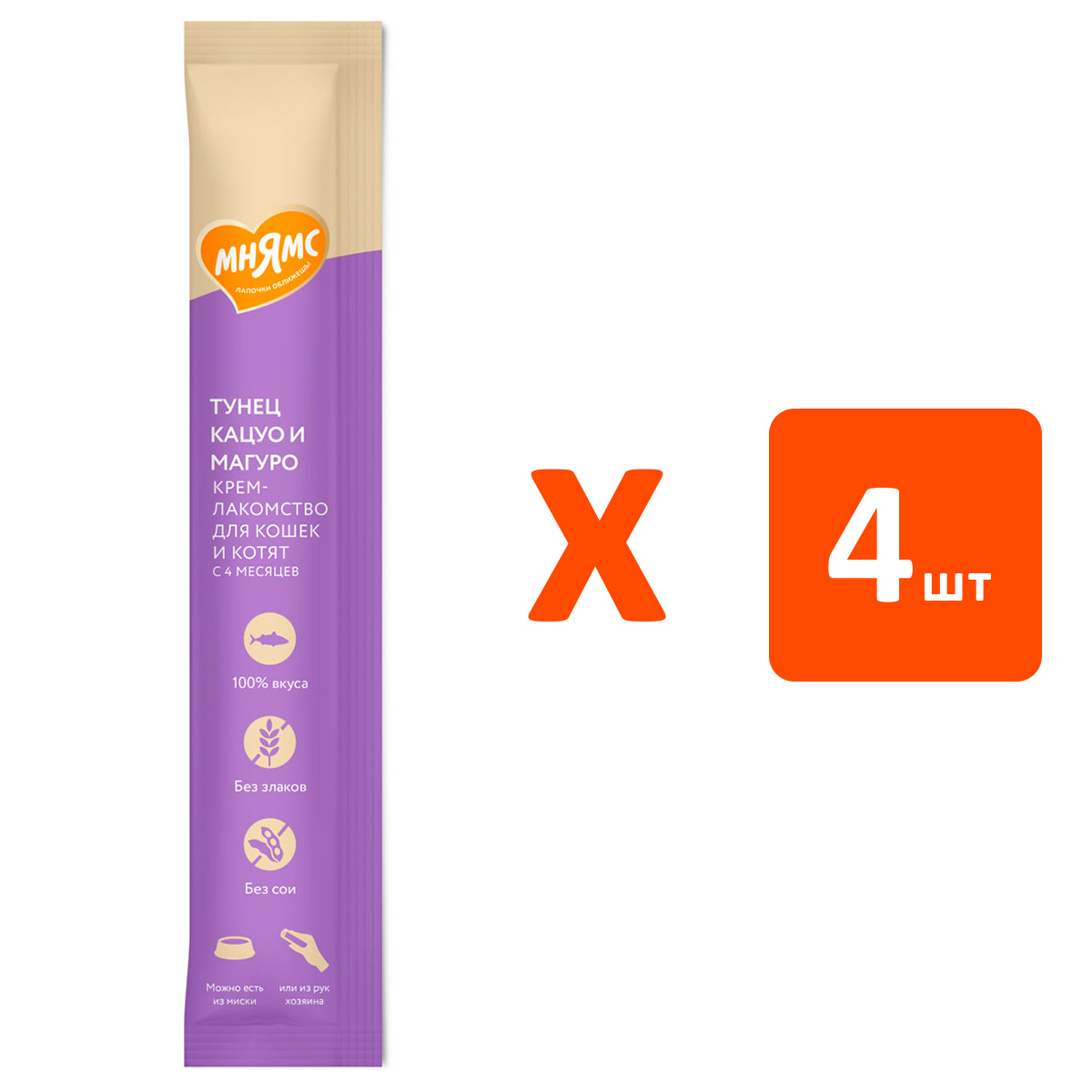Лакомство для кошек МНЯМС крем тунец Кацуо, Магуро (1 шт х 4)