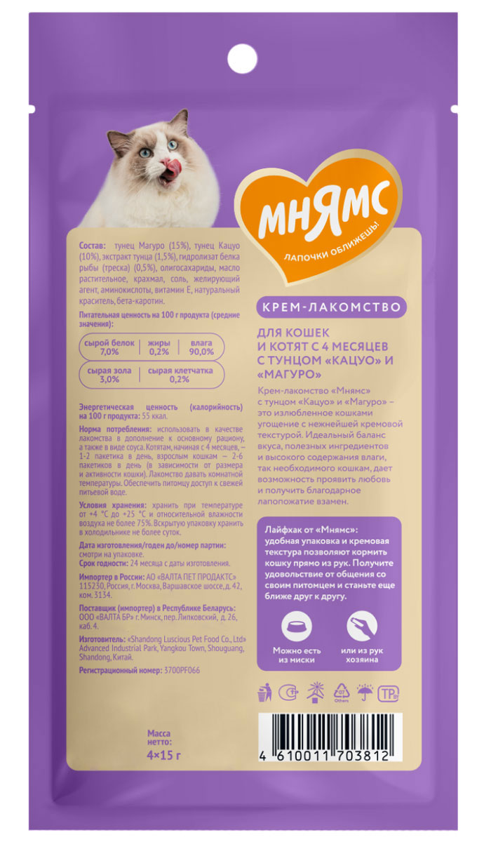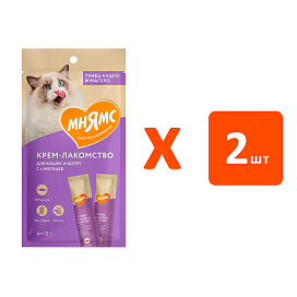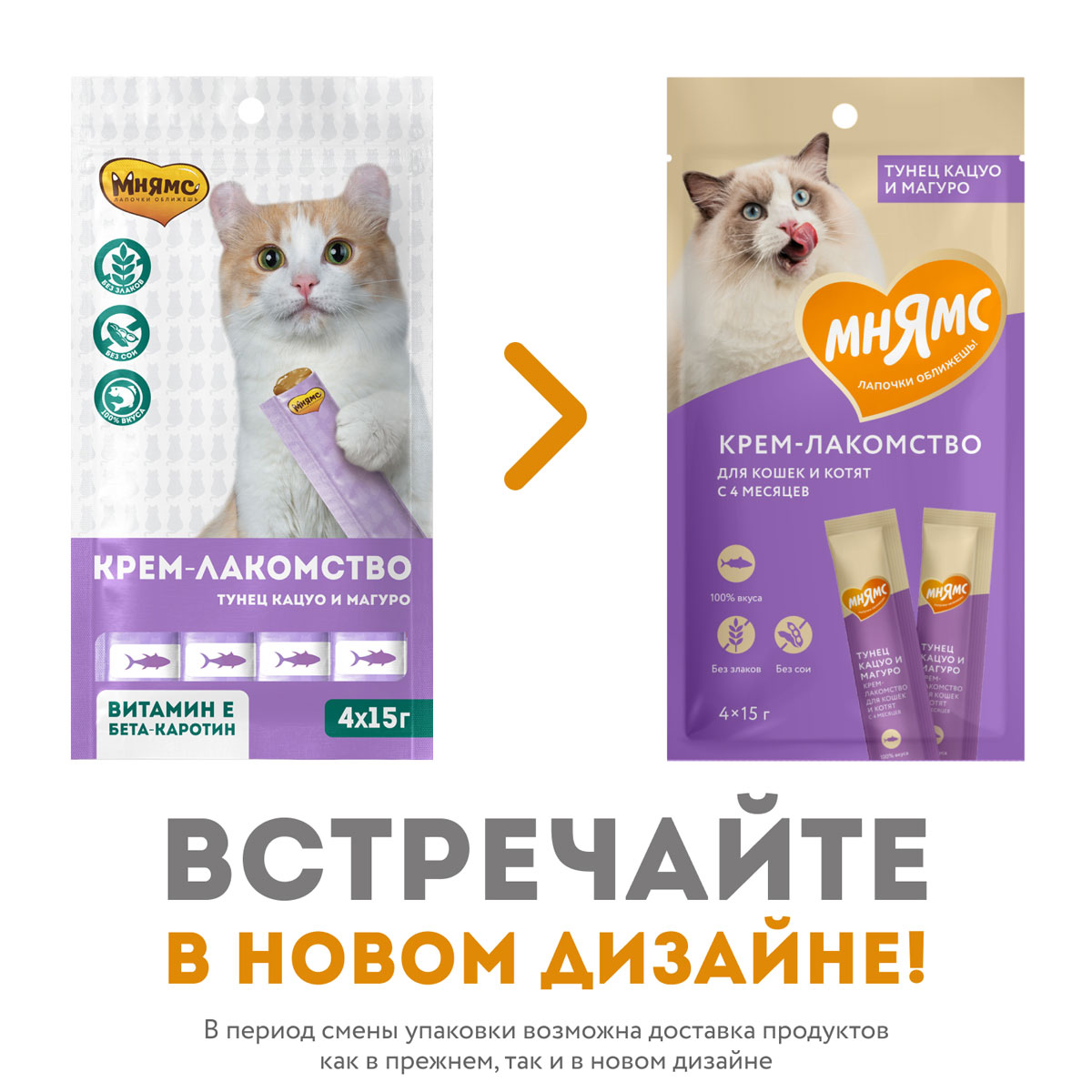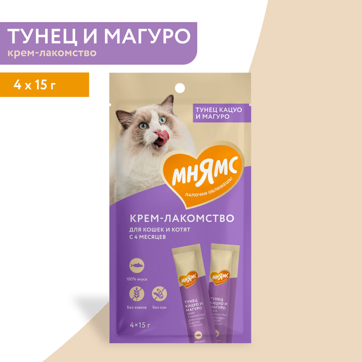 Лакомство для кошек МНЯМС крем тунец Кацуо, Магуро (4 шт х 2)