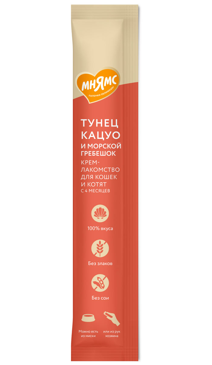 Лакомство для кошек МНЯМС крем тунец Кацуо, морской гребешок (1 шт)