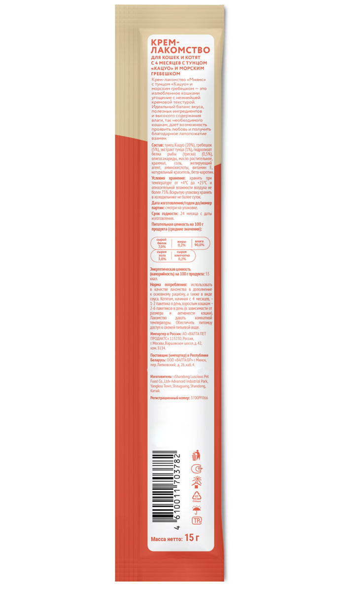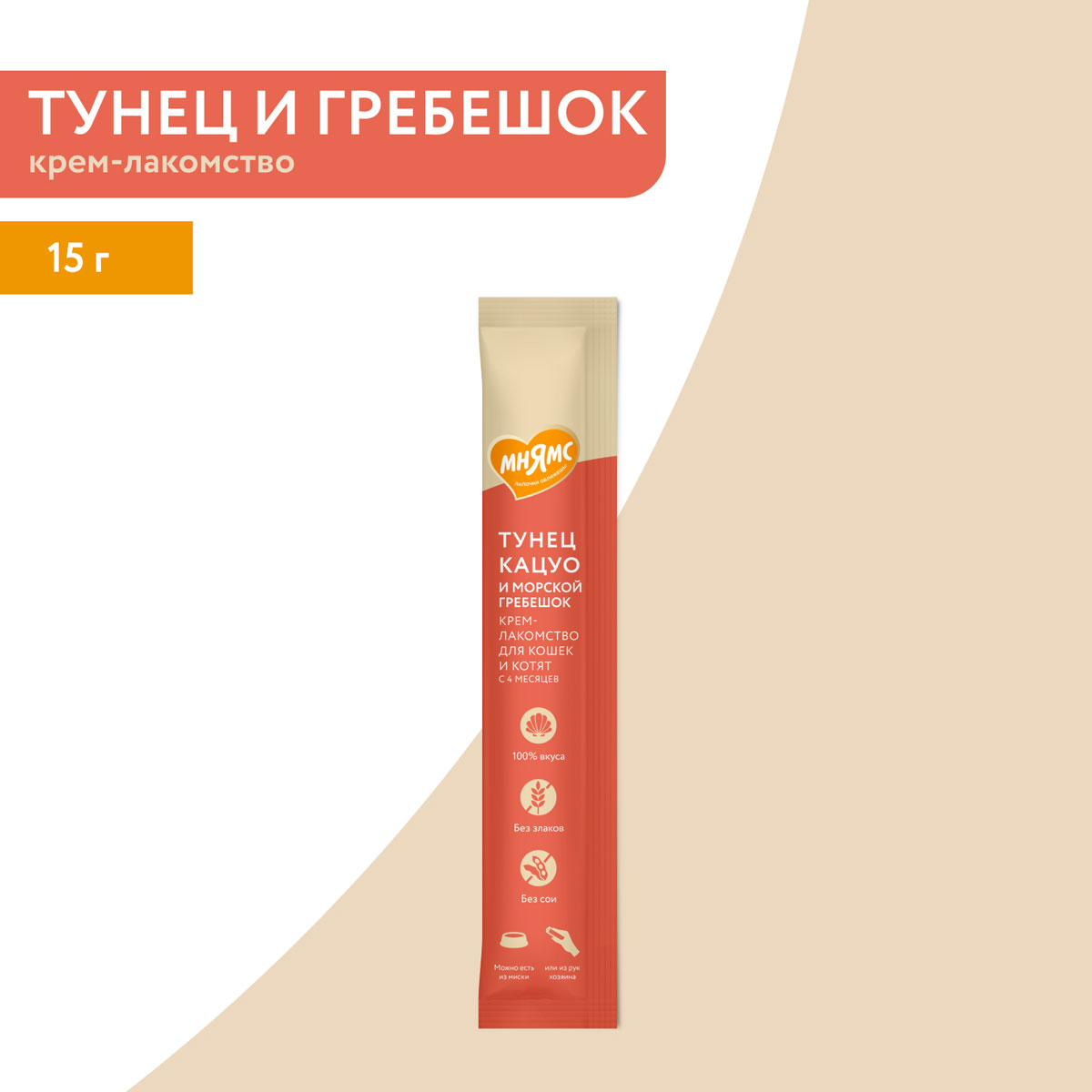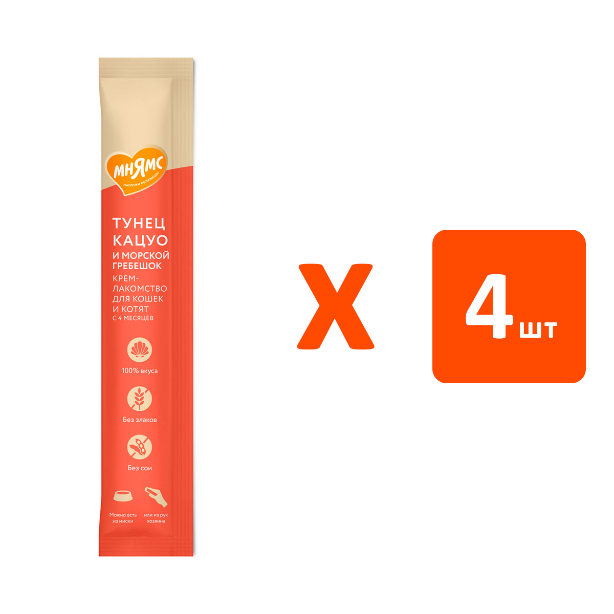 Лакомство для кошек МНЯМС крем тунец Кацуо, морской гребешок (1 шт х 4)