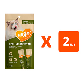 Лакомство для кошек МНЯМС крем утка, тунец Кацуо (4 шт х 2)