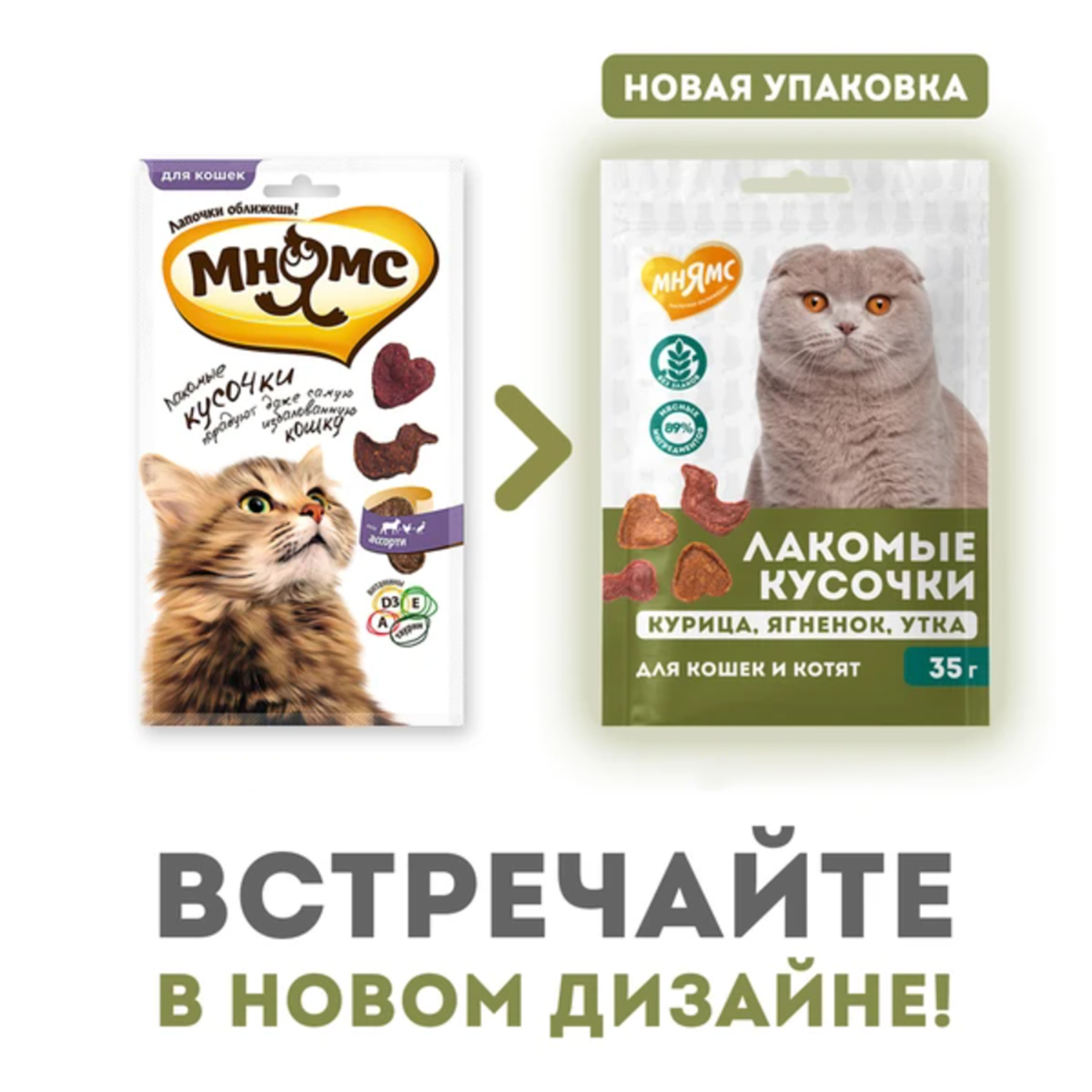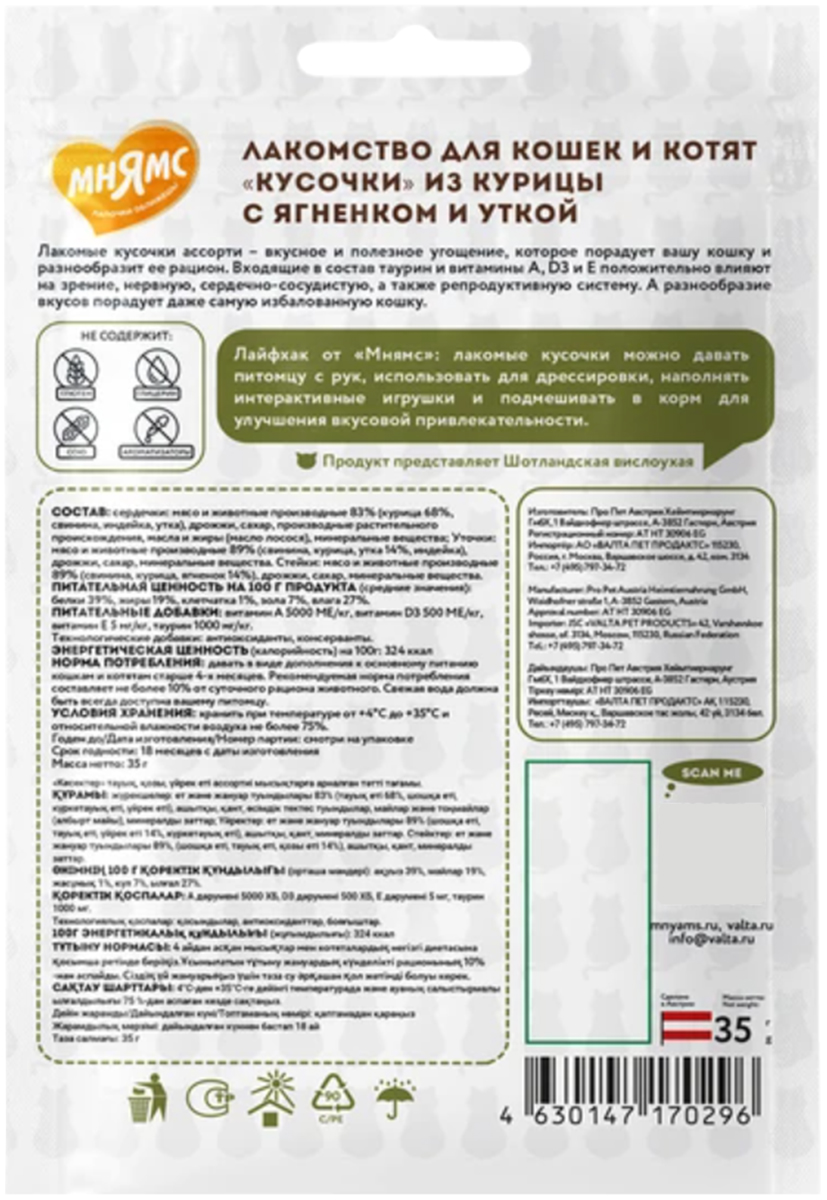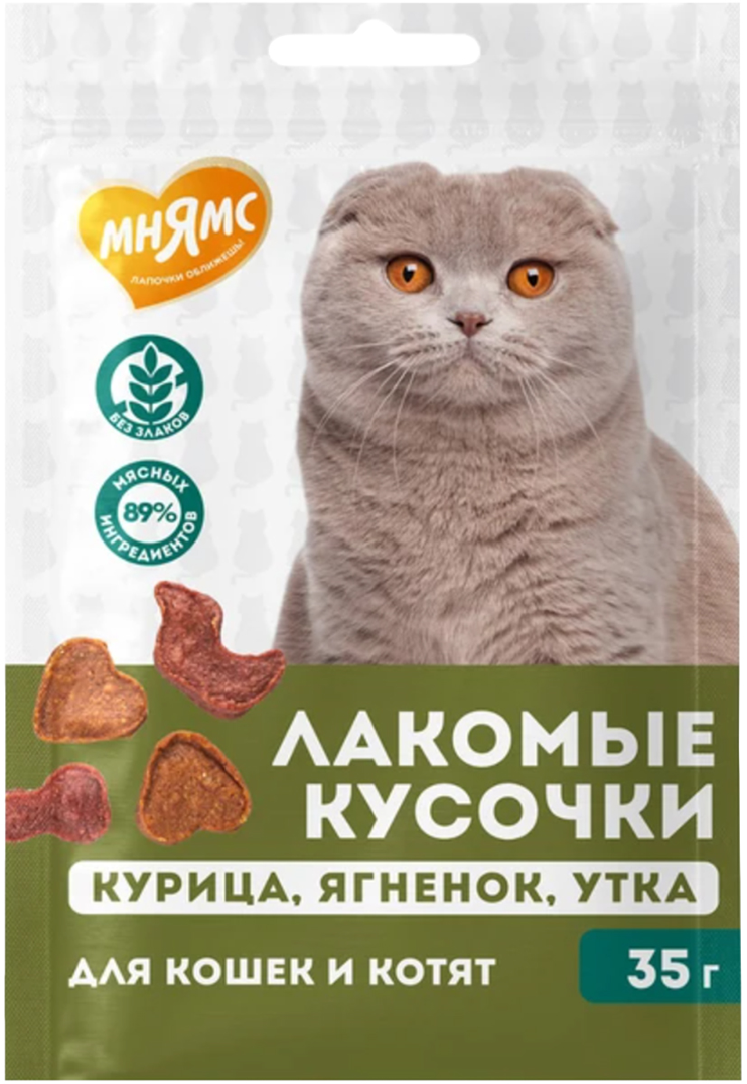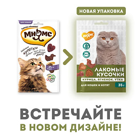 Лакомство для кошек МНЯМС лакомые кусочки курица, ягненок, утка 35 гр (1 шт)