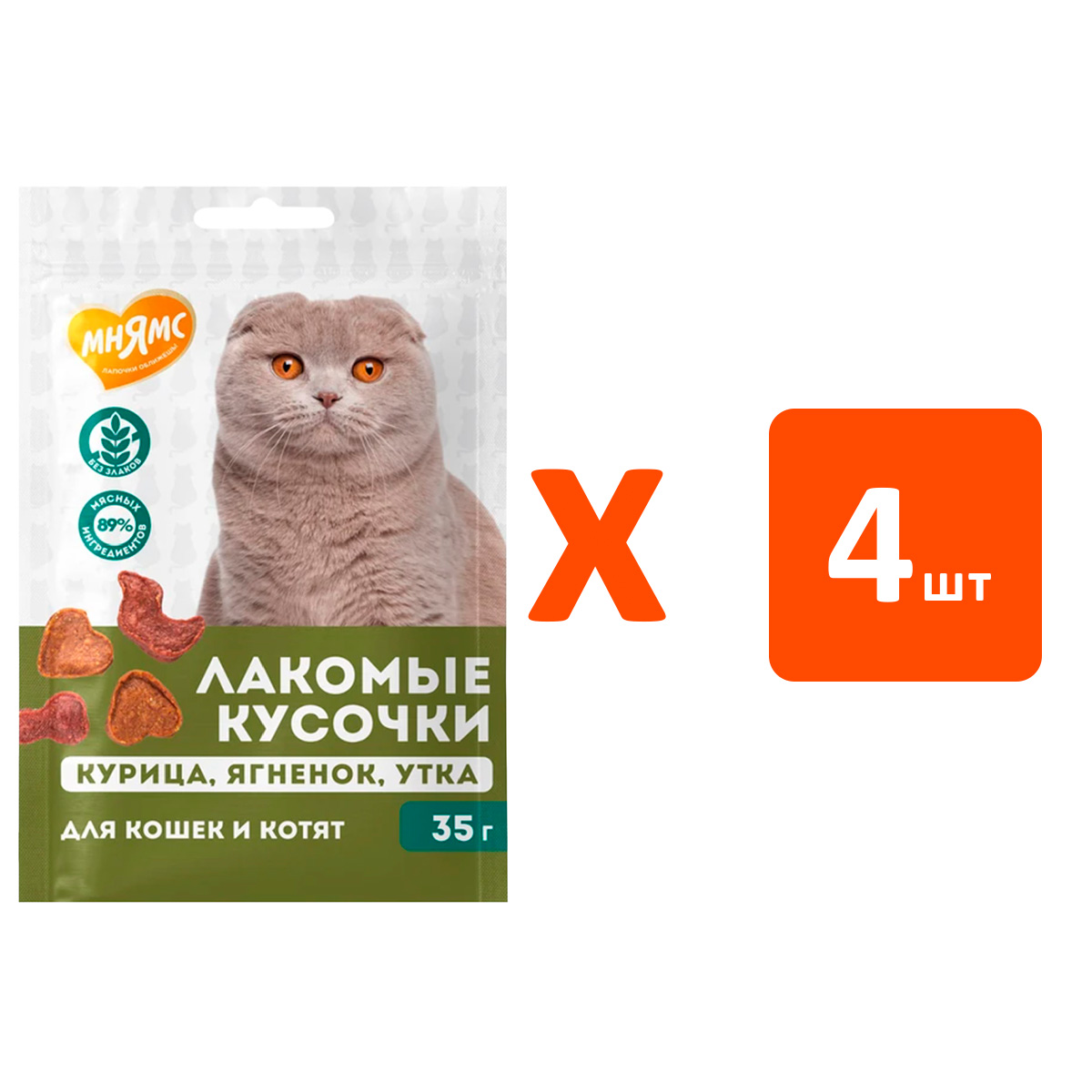 Лакомство для кошек МНЯМС лакомые кусочки курица, ягненок, утка 35 гр (1 шт х 4)