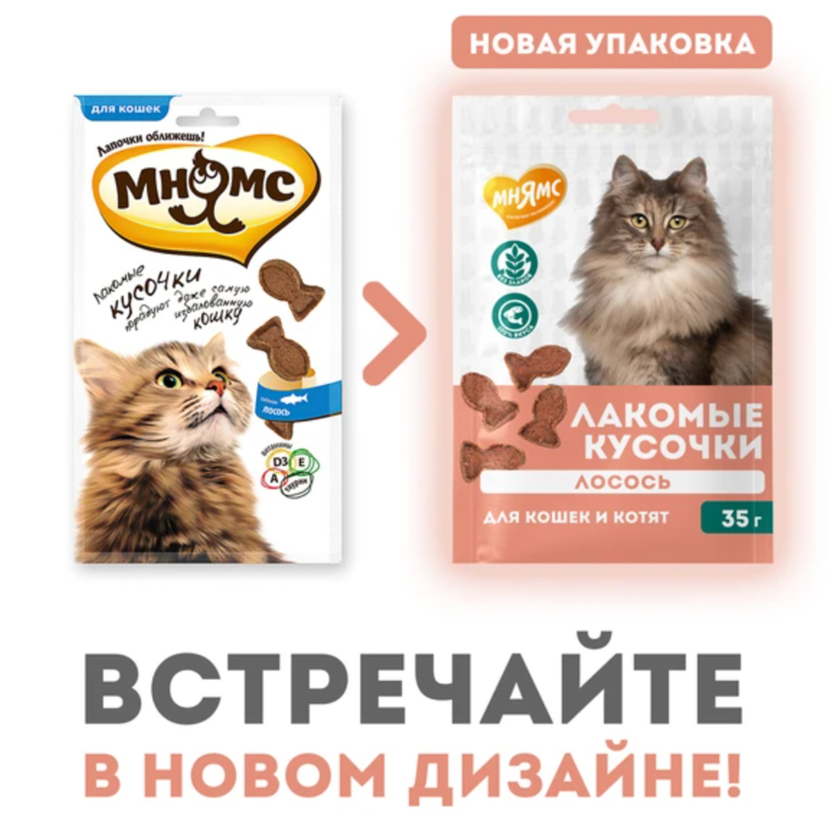 Лакомые кусочки Мнямс с лососем для кошек.