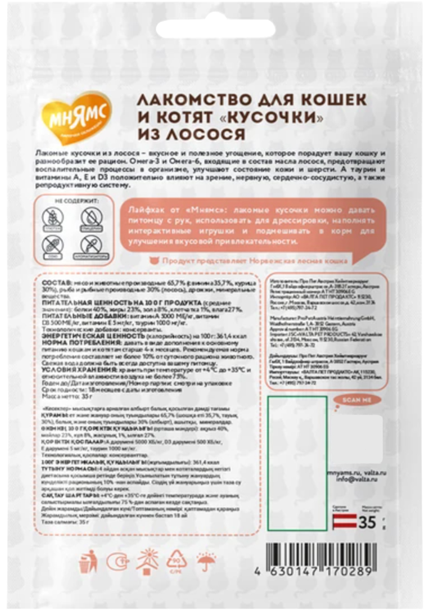 Лакомство для кошек МНЯМС лакомые кусочки лосось 35 гр (1 шт х 4)