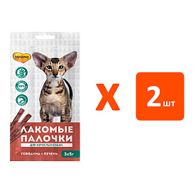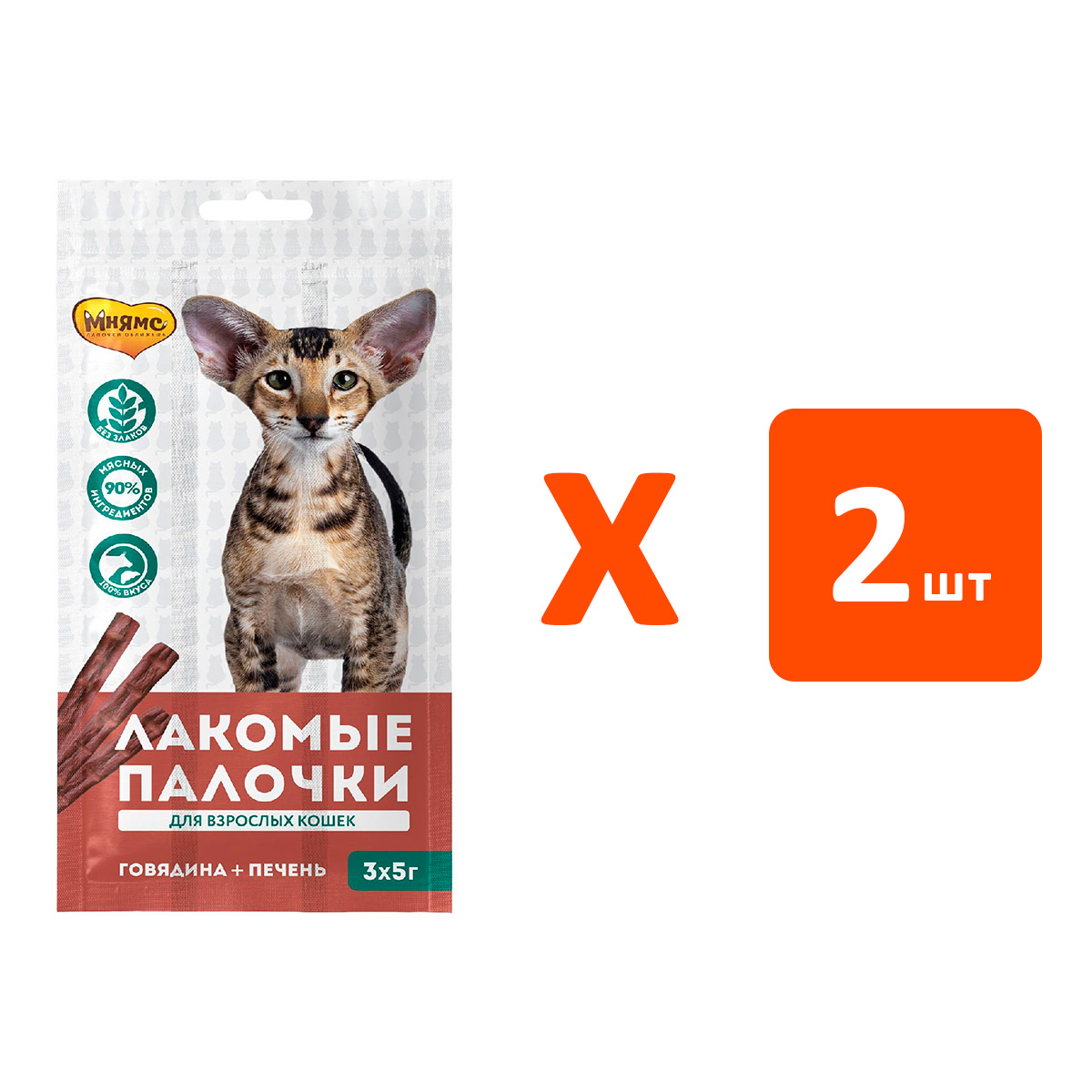 Лакомство для кошек МНЯМС лакомые палочки говядина, печень 15 гр (1 шт х 2)