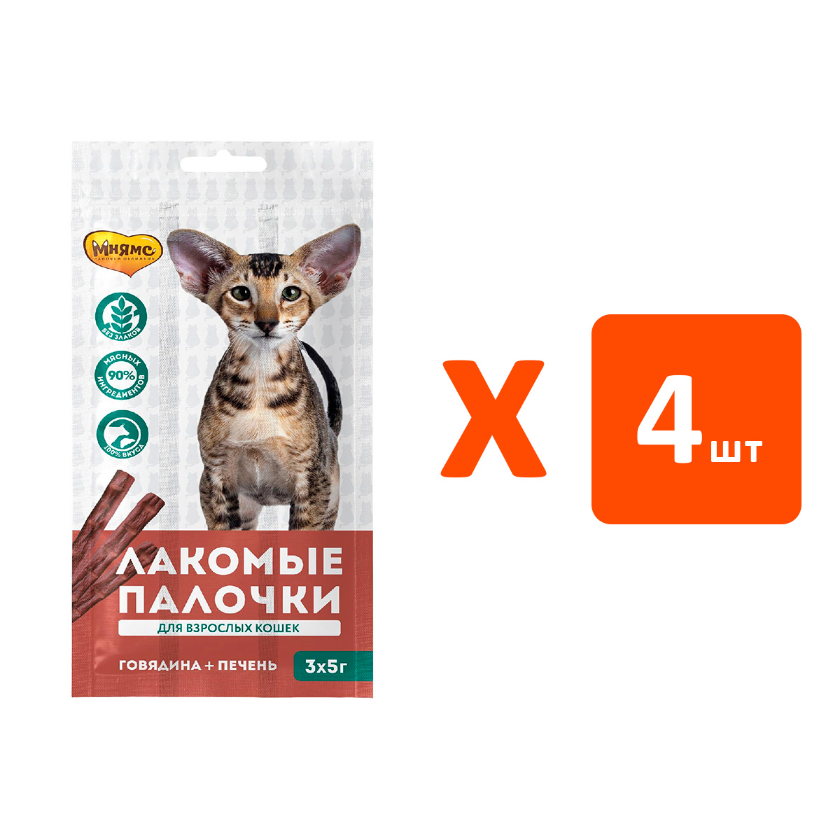 Лакомство для кошек МНЯМС лакомые палочки говядина, печень 15 гр (1 шт х 4)