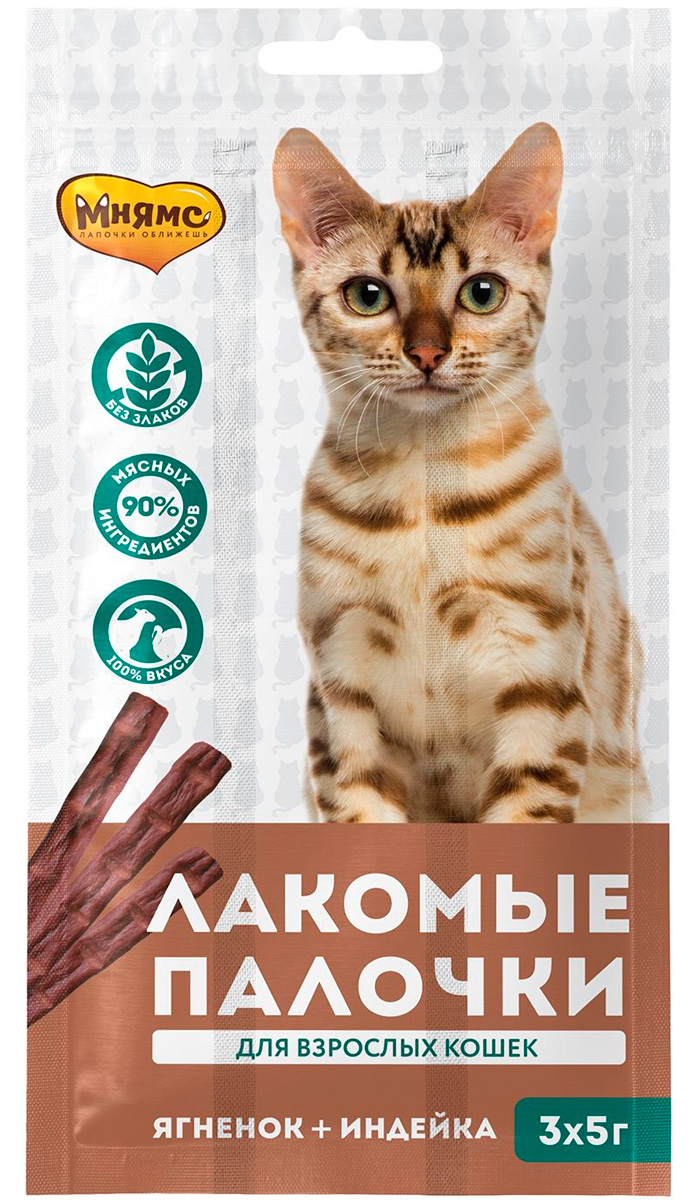 Лакомство для кошек МНЯМС лакомые палочки индейка, ягненок (15 гр)