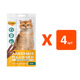 Лакомство для кошек МНЯМС лакомые палочки цыпленок, печень 15 гр (1 шт х 4)