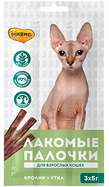 Лакомство для кошек МНЯМС лакомые палочки утка, кролик (15 гр)