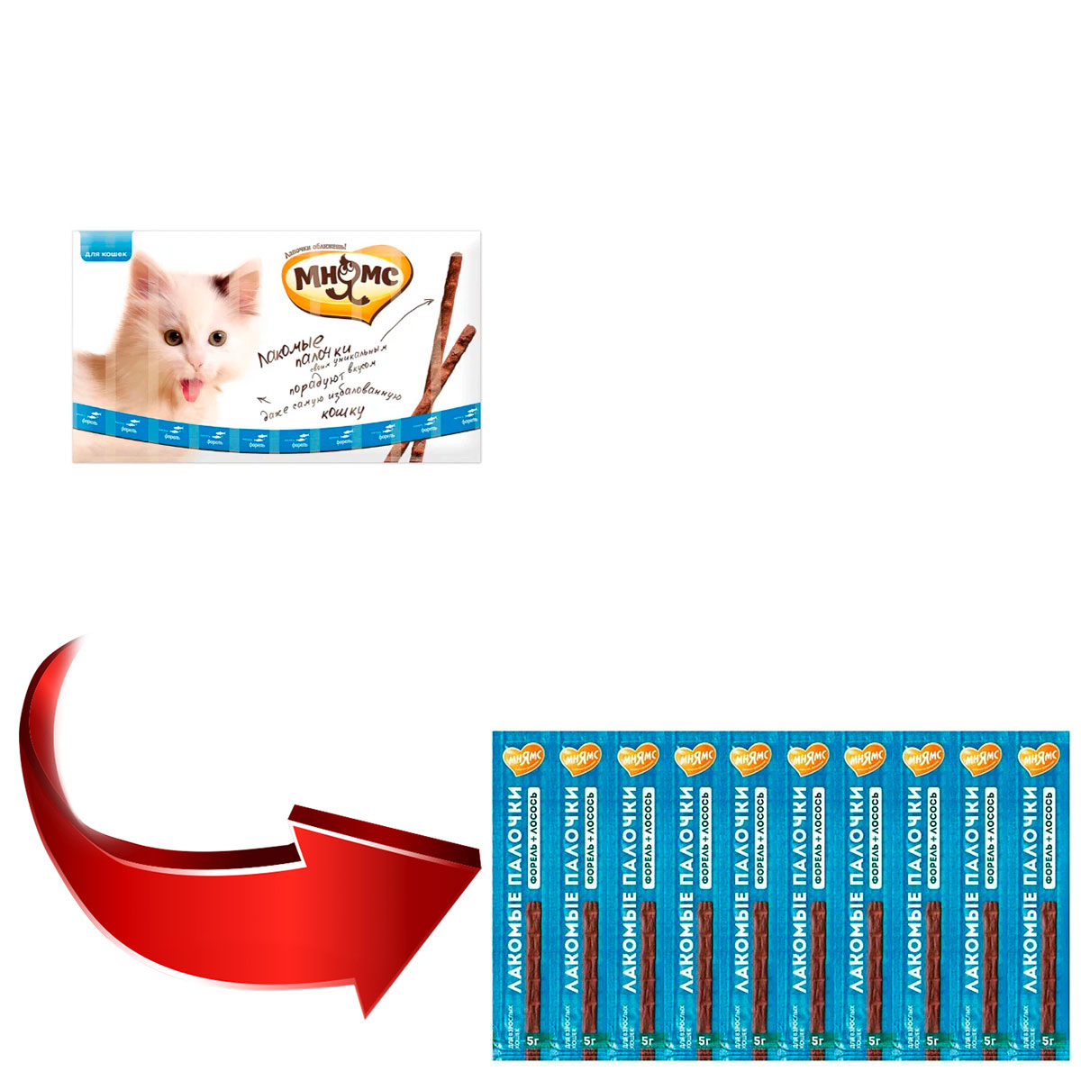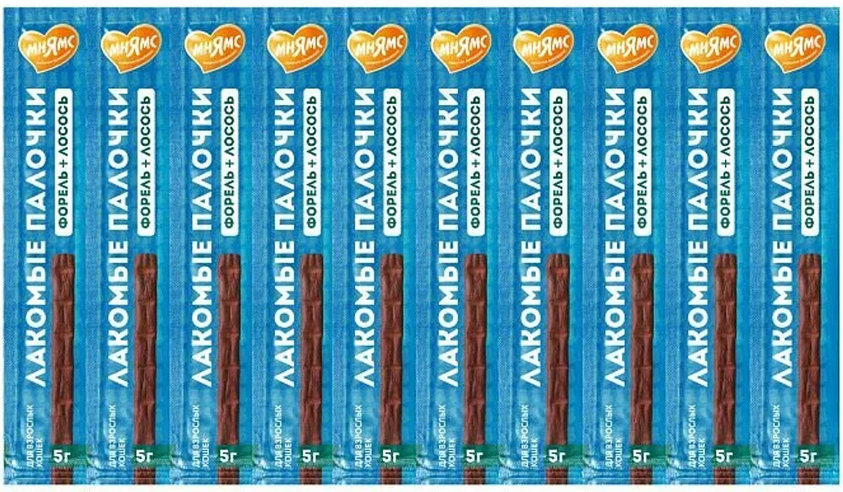 Лакомство для кошек МНЯМС палочки форель, лосось уп. 10 шт по 5 гр (1 шт)