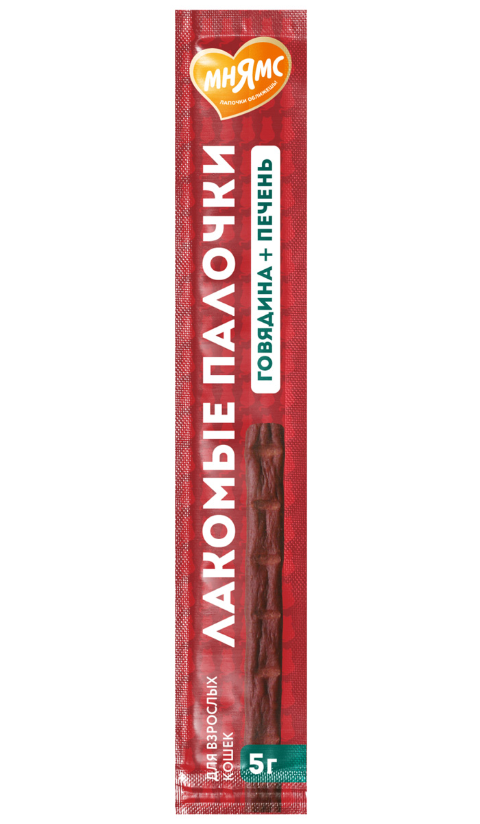 Лакомство для кошек МНЯМС палочки говядина, печень (5 гр)