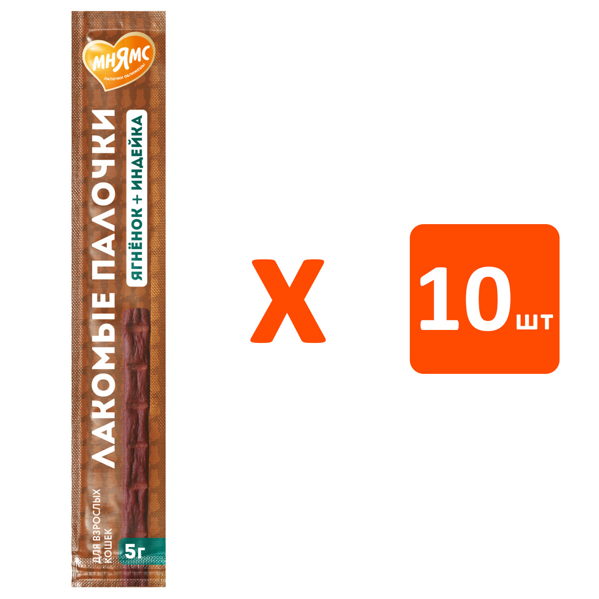 Лакомство для кошек МНЯМС палочки индейка, ягненок (5 гр х 10 шт)