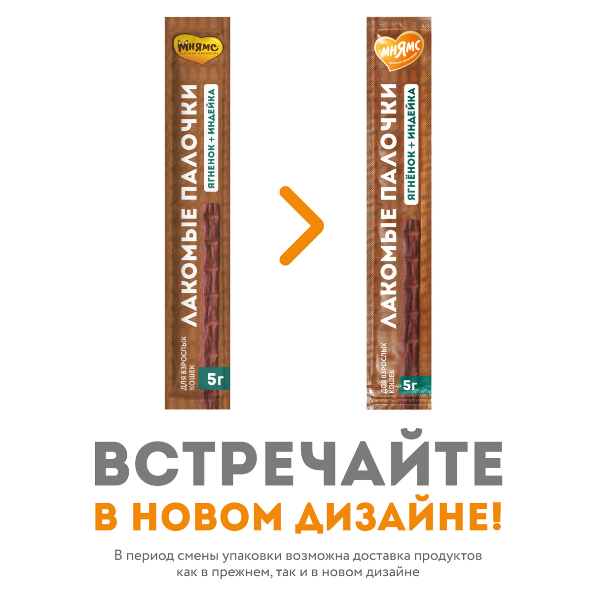 Лакомство для кошек МНЯМС палочки индейка, ягненок (5 гр х 2 шт)
