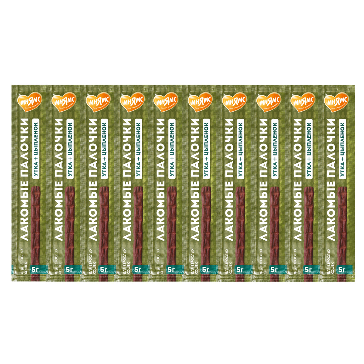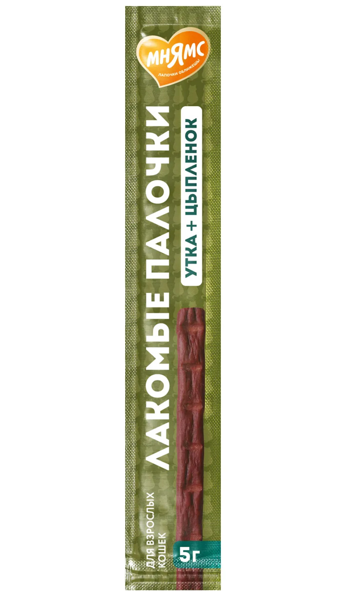 Лакомство для кошек МНЯМС палочки цыпленок, утка (5 гр)