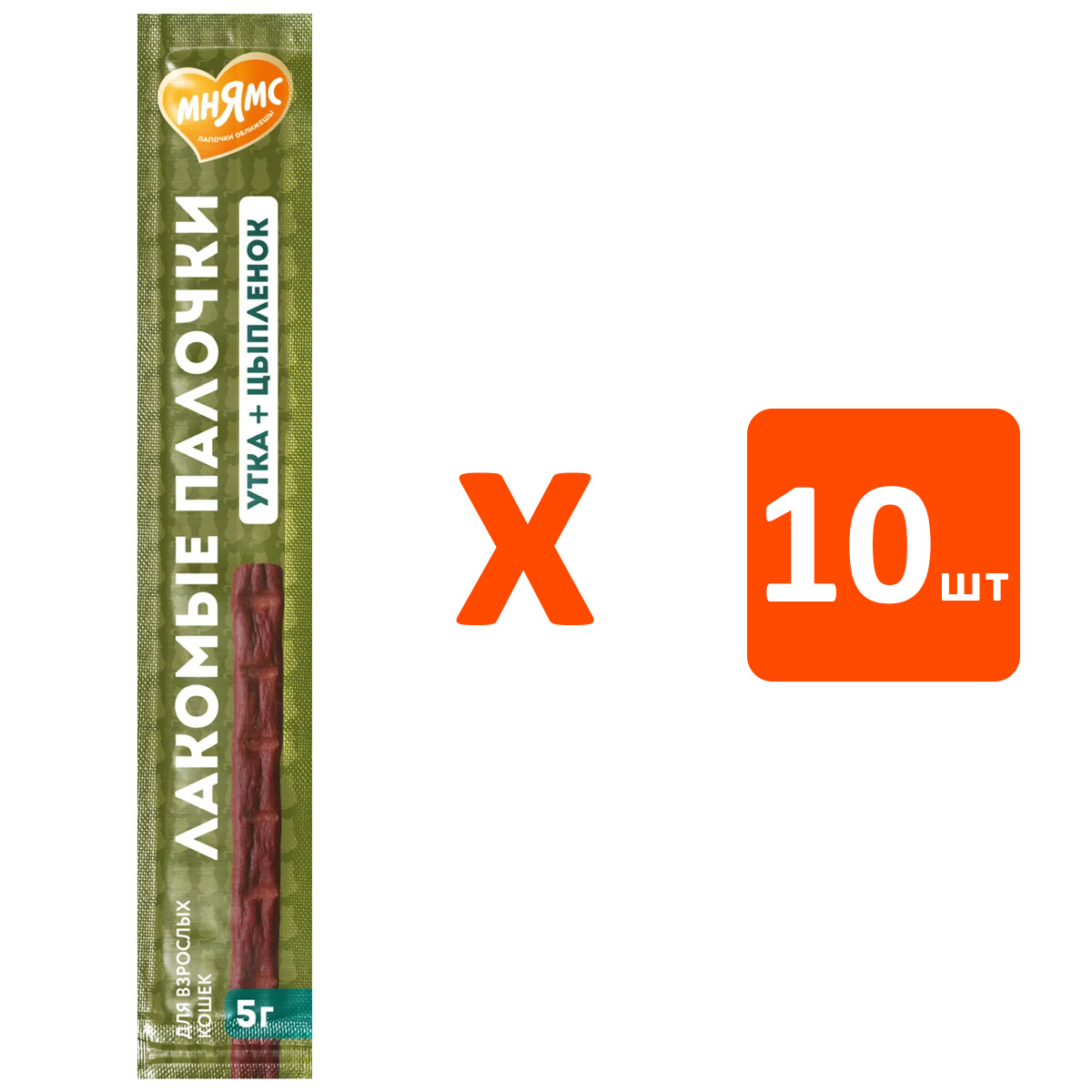 Лакомство для кошек МНЯМС палочки цыпленок, утка (5 гр х 10 шт)