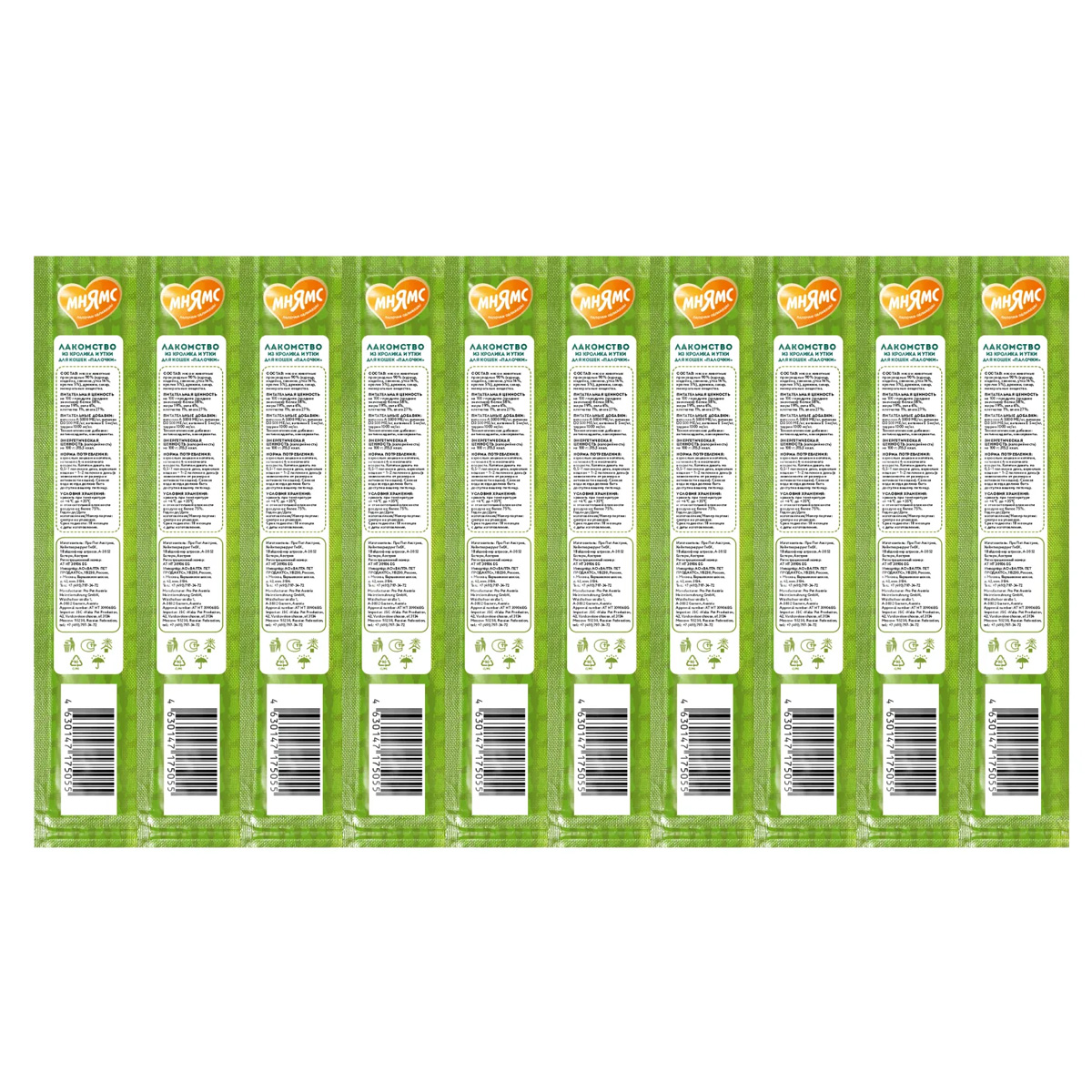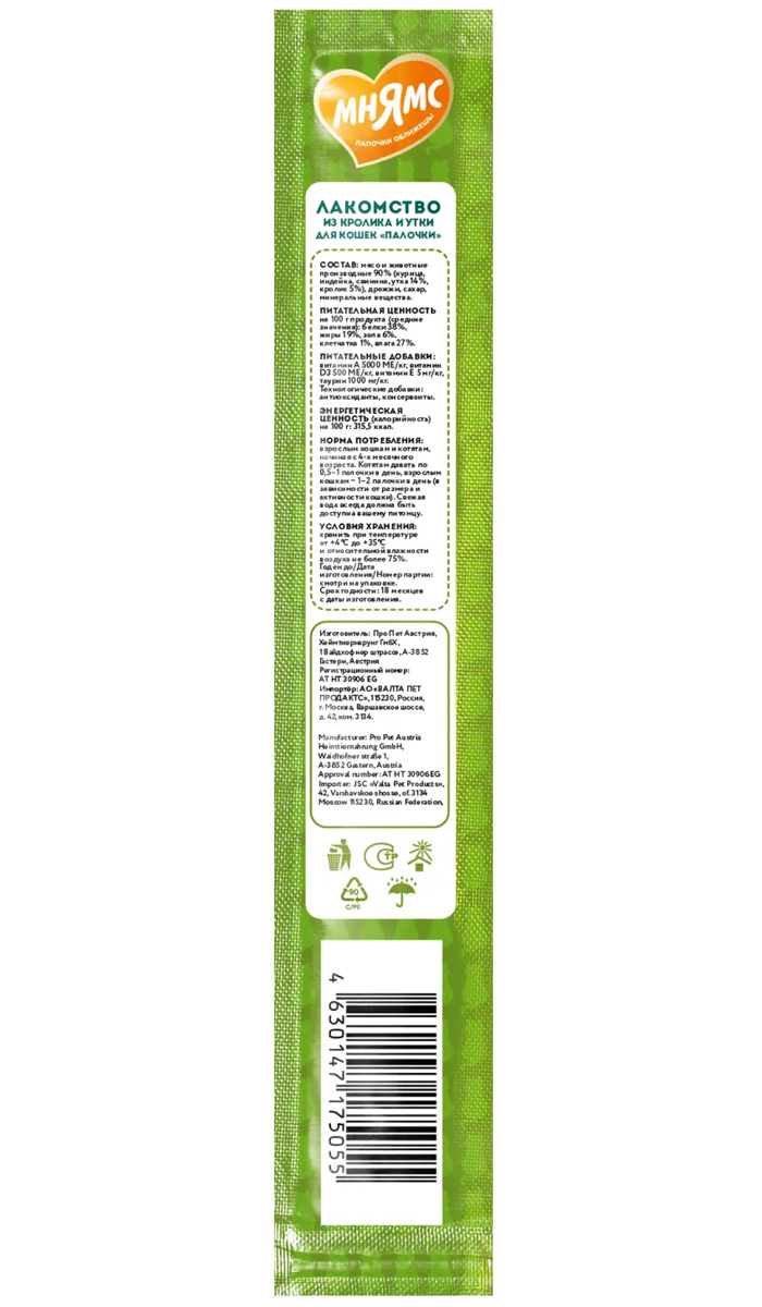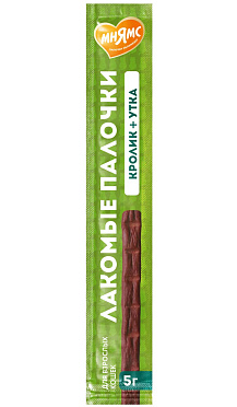 Лакомство для кошек МНЯМС палочки утка, кролик (5 гр АКЦ)