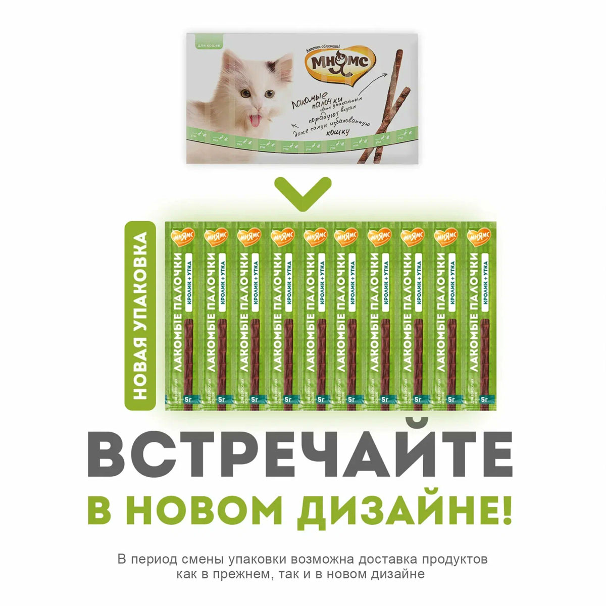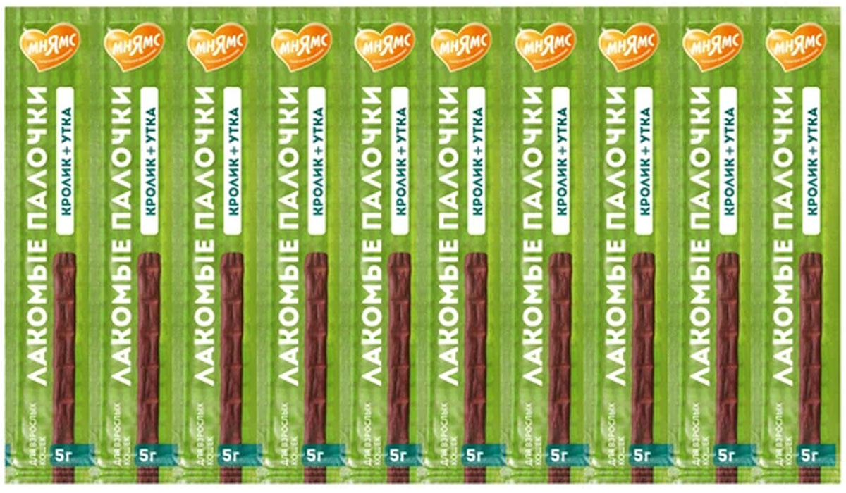 Лакомство для кошек МНЯМС палочки утка, кролик уп. 10 шт по 5 гр (1 шт)