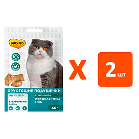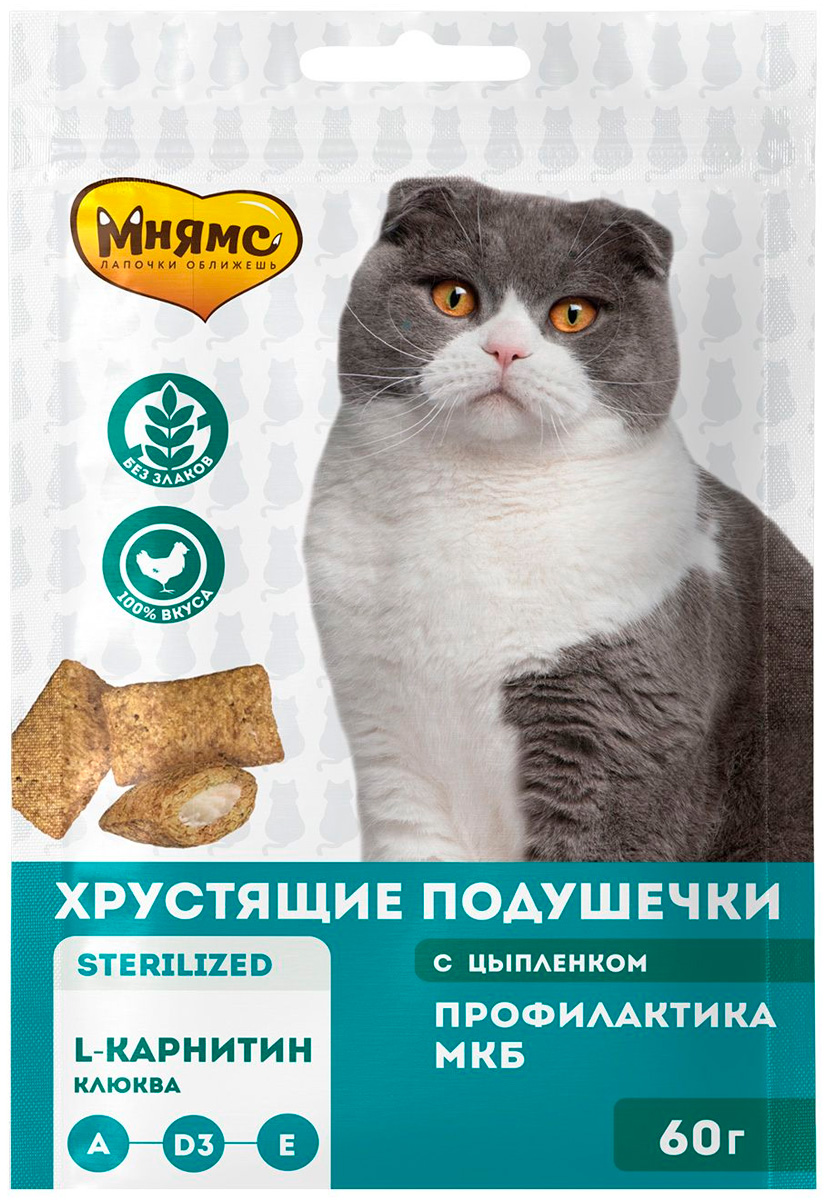 Лакомство для кошек МНЯМС ПРОФИЛАКТИКА МКБ хрустящие подушечки цыпленок, клюква (60 гр х 2 шт)