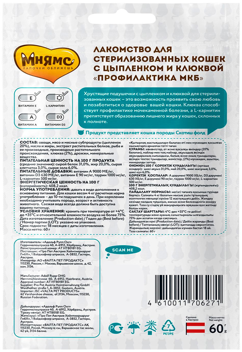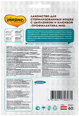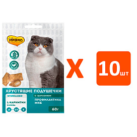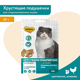 Лакомство для кошек МНЯМС ПРОФИЛАКТИКА МКБ хрустящие подушечки цыпленок, клюква (60 гр х 10 шт)