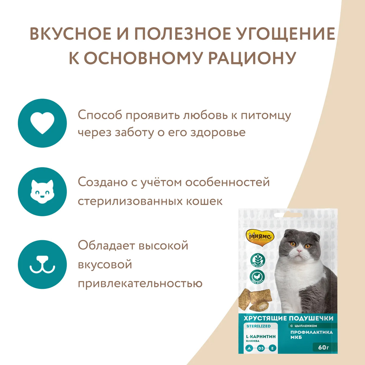 Хрустящие подушечки «Мнямс»- это изысканное и полезное угощение, от которого не откажется даже самая привередливая и избалованная кошка.