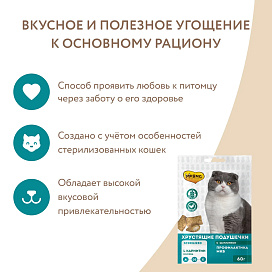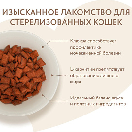 Хрустящие подушечки с цыпленком и клюквой для стерилизованных кошек - это возможность проявить свою любовь и позаботиться о здоровье Вашей кошки.