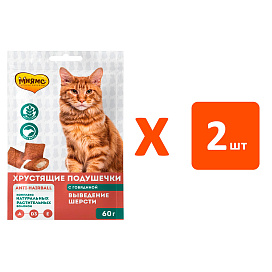Лакомство для кошек МНЯМС ВЫВЕДЕНИЕ ШЕРСТИ хрустящие подушечки говядина (60 гр х 2 шт)