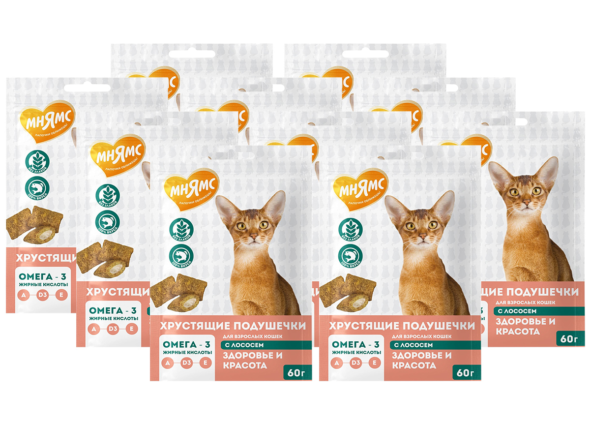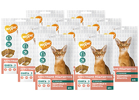 Лакомство для кошек МНЯМС ЗДОРОВЬЕ И КРАСОТА хрустящие подушечки лосось (60 гр х 10 шт)