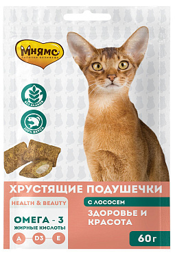 Мнямс хрустящие подушечки для кошек с лососем «Здоровье и красота».
