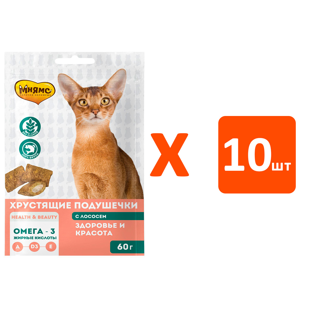 Лакомство для кошек МНЯМС ЗДОРОВЬЕ И КРАСОТА подушечки лосось (60 гр х 10 шт)