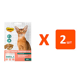 Лакомство для кошек МНЯМС ЗДОРОВЬЕ И КРАСОТА подушечки лосось (60 гр х 2 шт)
